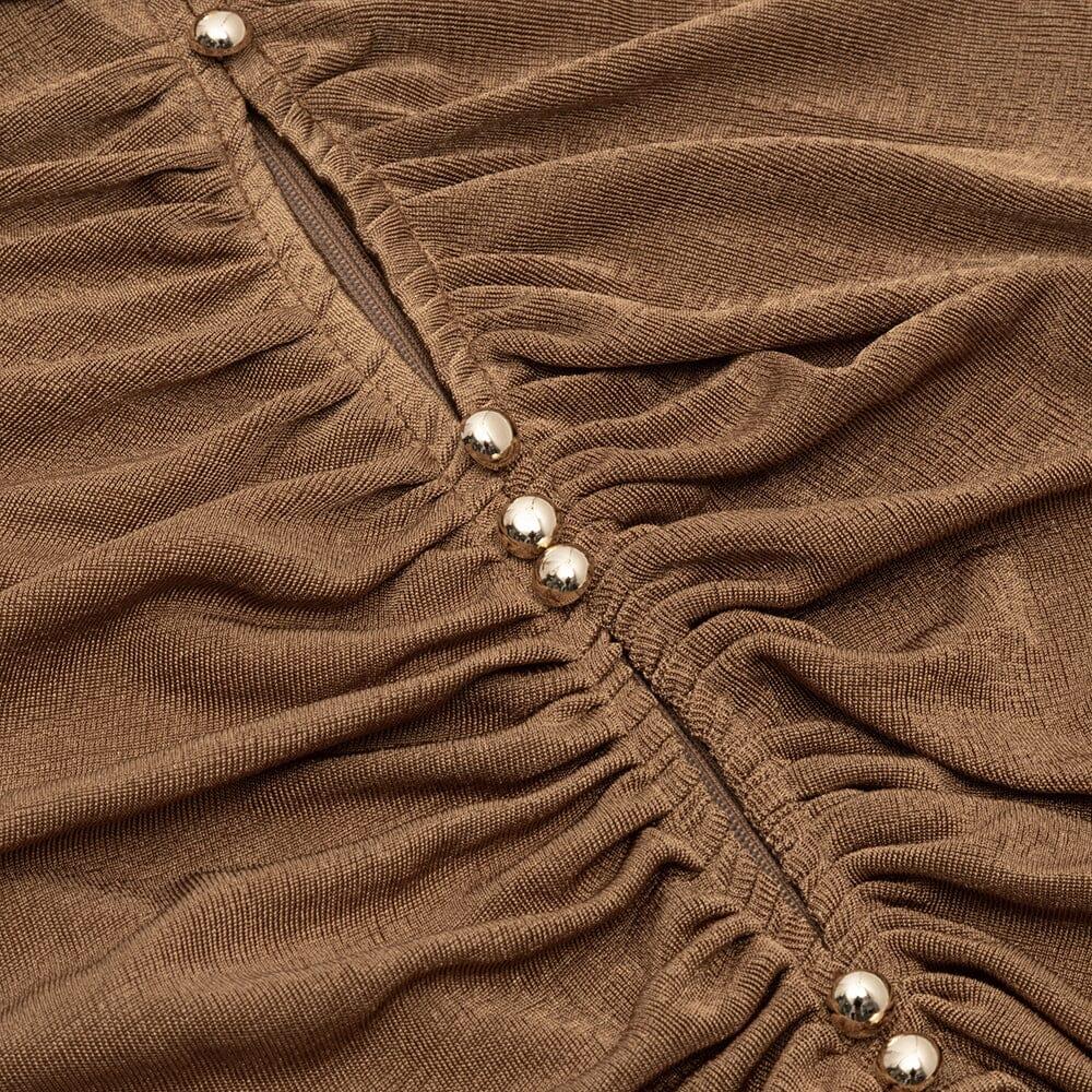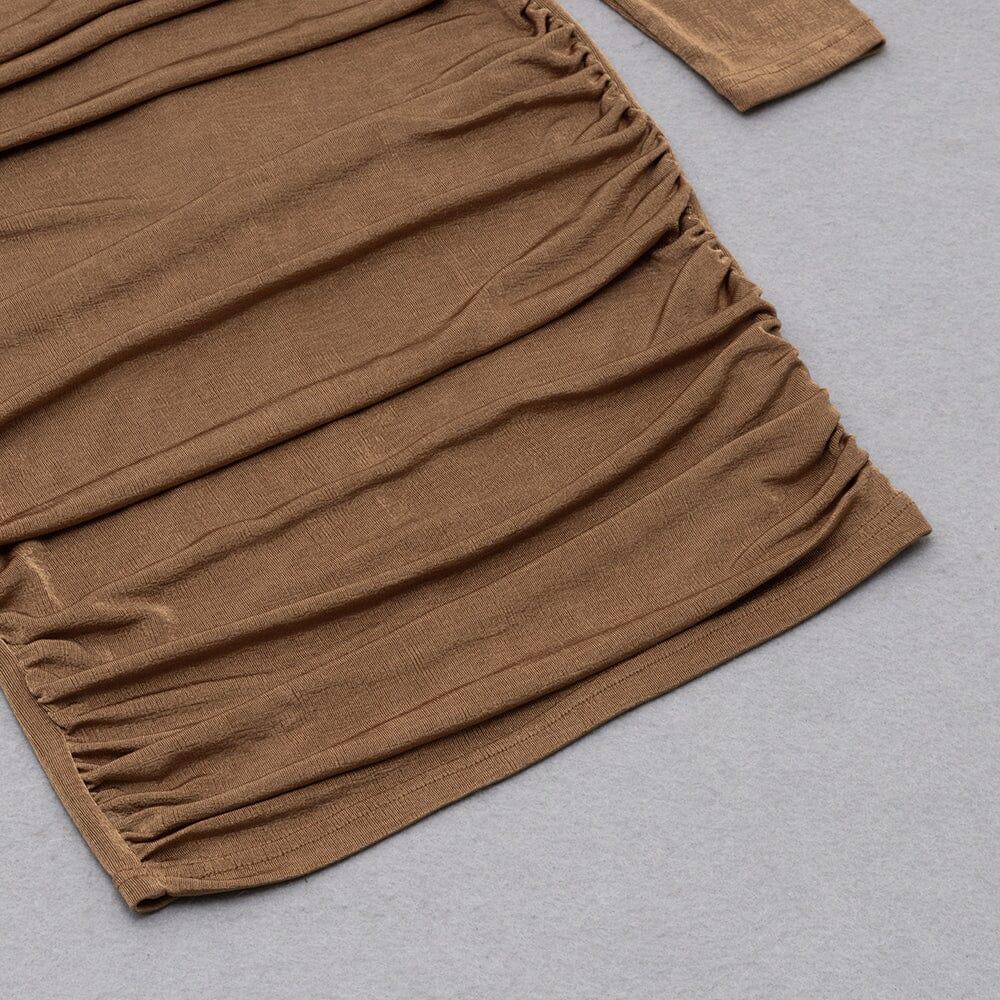Why Choose Our Caramel Turtleneck Waist Hollow Pleated Dress?