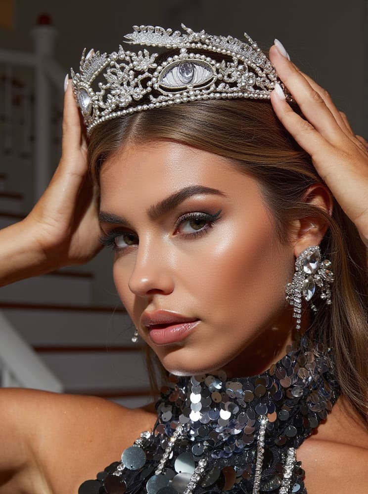 Elevate your look with our Carolyn Rhinestone Embellished Crown. Adorned with sparkling rhinestones, this crown will make you stand out and feel like royalty. Perfect for special occasions or adding a touch of glamour to your everyday style. Don't just wear a crown, wear a Carolyn Rhinestone Embellished Crown!