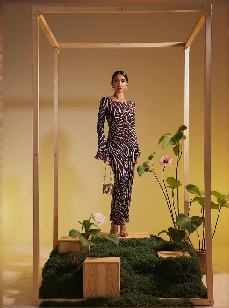 Cecily Long Sleeve Tiger Printed Maxi Dress