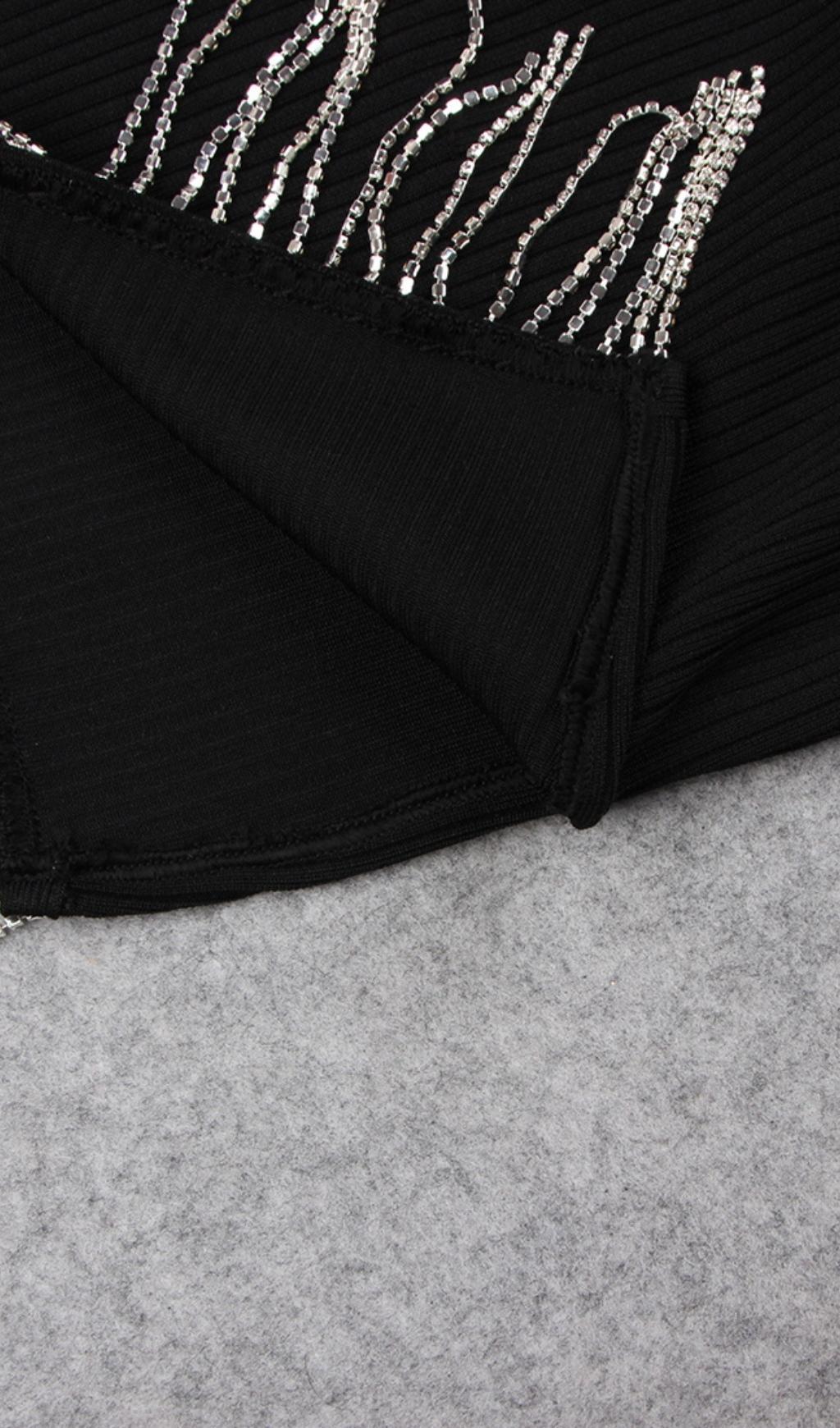 If you want to be a sexier, more attractive woman, check out our Chain Mini Dress in Black. This dress is designed to enhance your beautiful figure with its waist-in design. The unique hem design will make you stand out in the crowd as the most dazzling girl. The black color adds a touch of composure to your look.
