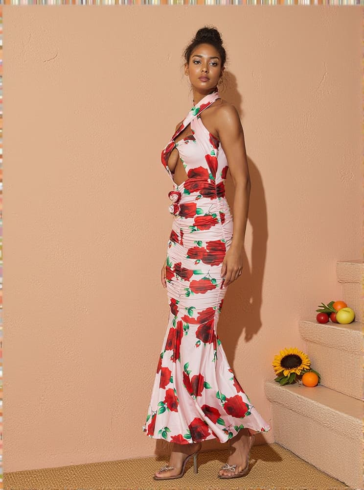 Step out in style with the Charlotte Rose Printed Maxi Dress. Featuring a halterneck silhouette, this elegant dress is adorned with a beautiful rose print and a maxi length skirt, creating an elegant and timeless look for any occasion.