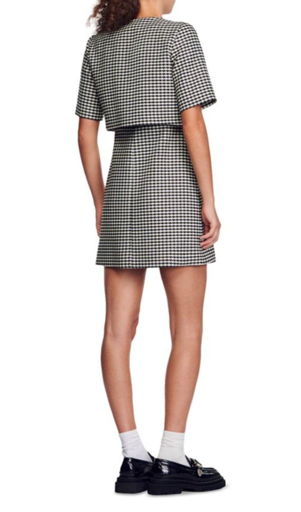 CHARLOTTE LAYERED HOUNDSTOOTH TWEED DRESS