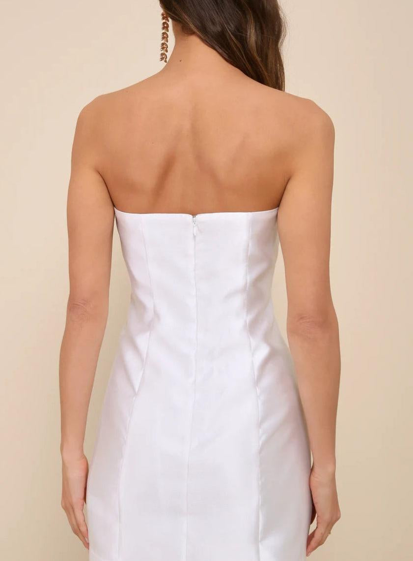 Charming Destiny White 3D Floral Applique Strapless Mini Dress