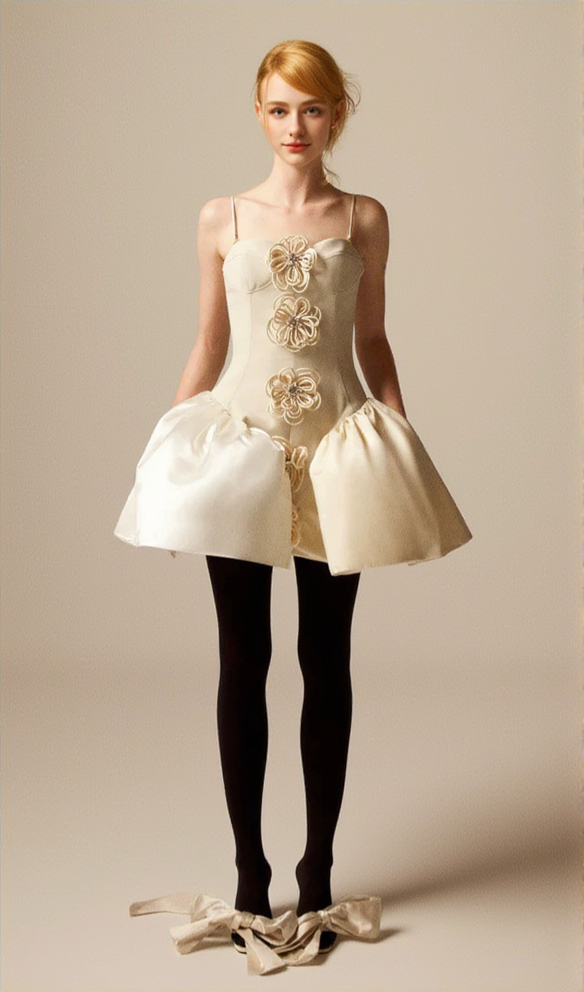 Step into a garden of style with the CHERYL FLOWER EMBELLISHED MINI DRESS. This playful dress features delicate flower embellishments, adding a touch of whimsy to your wardrobe. Let your fun-loving personality shine in this quirky and unique statement piece!