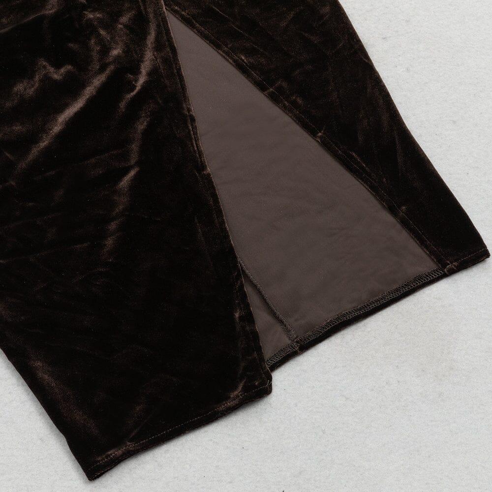 CHESTNUT ONE-SHOULDER BACKLESS BODYCON VELVET PLEATED MAXI DRESS