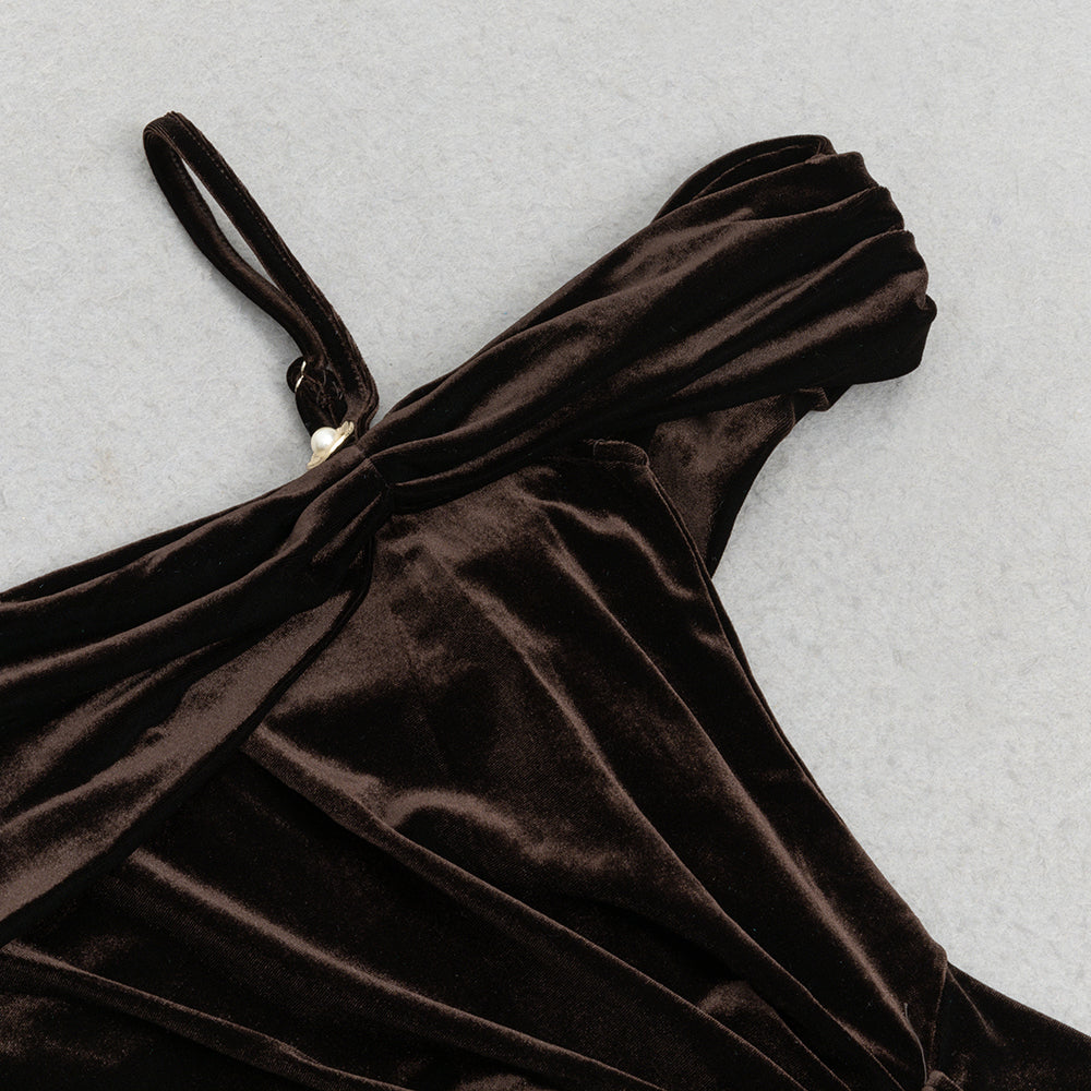 Step into sophistication with this ultra-luxe ABIRA VELVET PLEATED DRESS. Featuring an elegant one-shoulder design and luxurious velvet finish, this piece offers a timelessly glamorous look to spice up any wardrobe. The body-hugging design and pleated skirt is sure to flatter any figure, making this dress an effortlessly chic option for special occasions.
