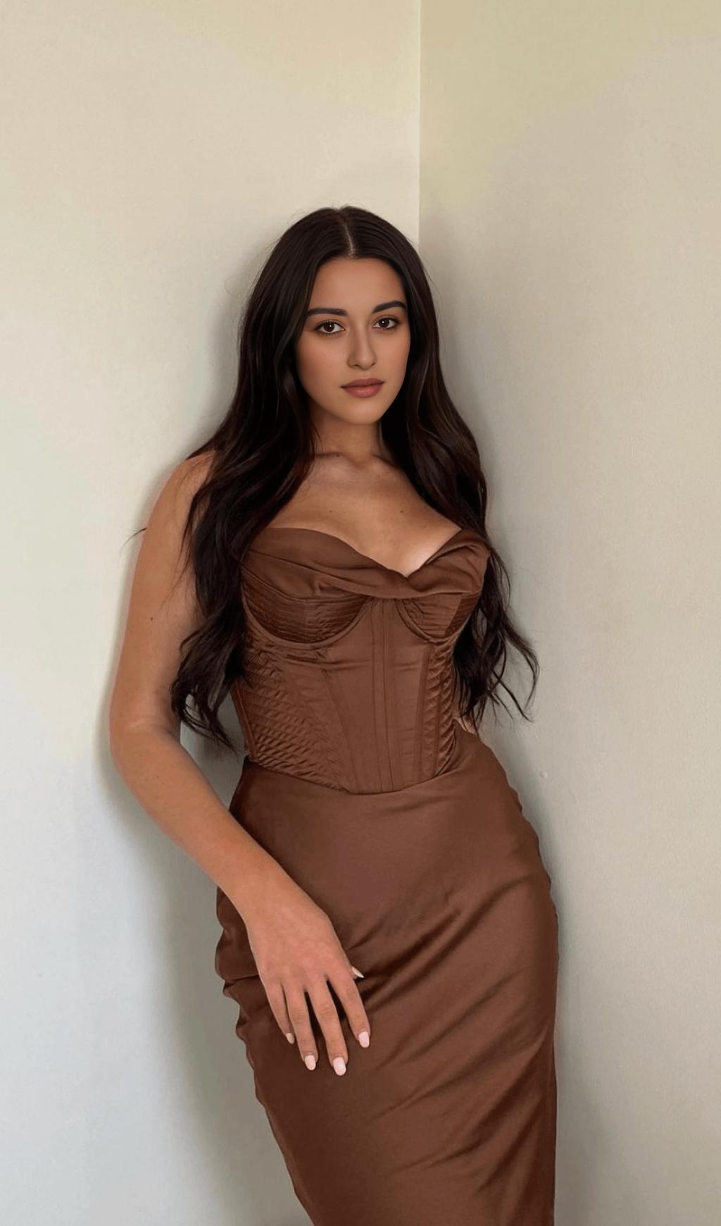 Indulge in the Delicacy of the Chocolate Satin Corset Slip Dress