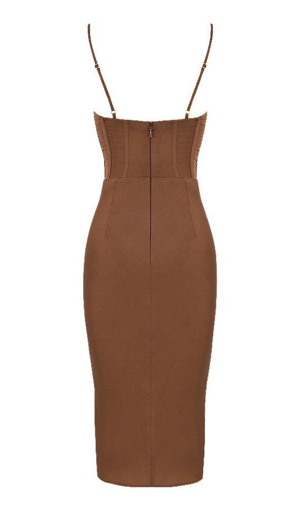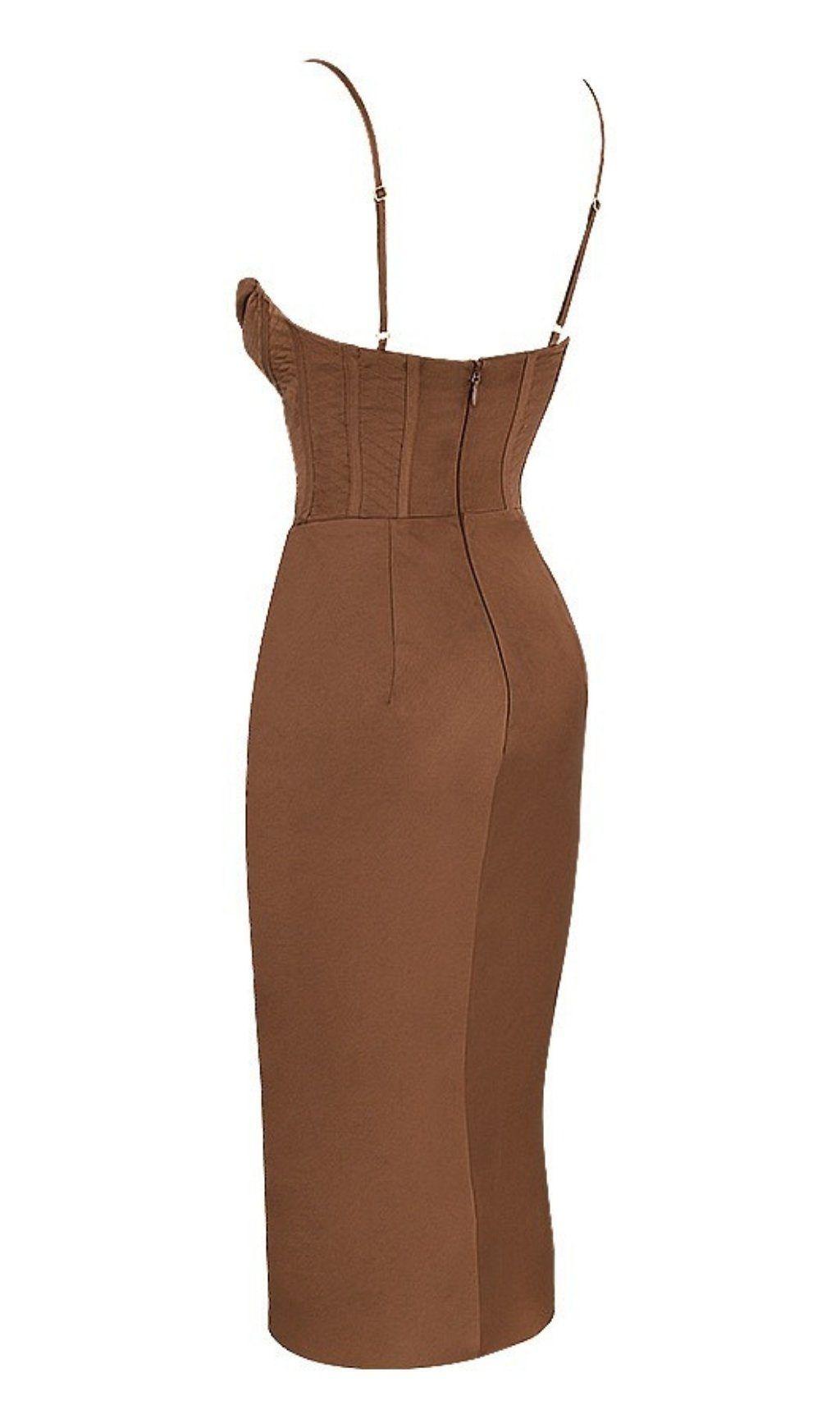CHOCOLATE SATIN CORSET SLIP DRESS