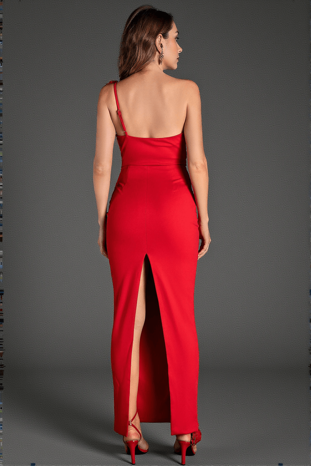 The captivating ruched design of the dress enhances your silhouette beautifully, creating a flattering fit that flatters every curve. The high side slit adds an extra touch of allure, ensuring you turn heads from every angle.