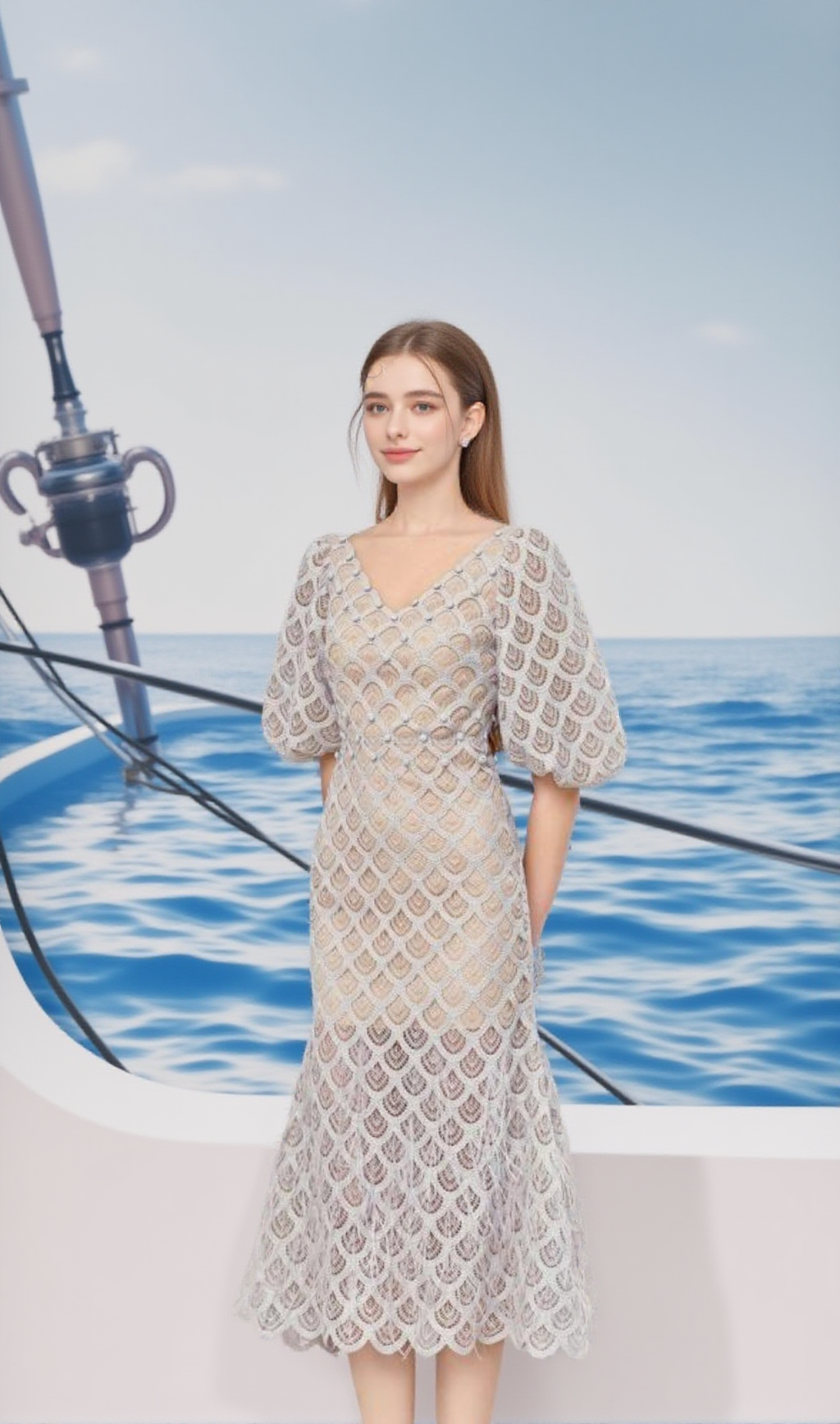 Elevate your style with our Ciara Trumpet Bishop Sleeved Lace Midi Dress. Featuring elegant bishop sleeves and intricate lace details, this dress is the perfect choice for any formal occasion. With a flattering trumpet silhouette, you'll feel confident and sophisticated. Enhance your wardrobe today with this stunning dress.