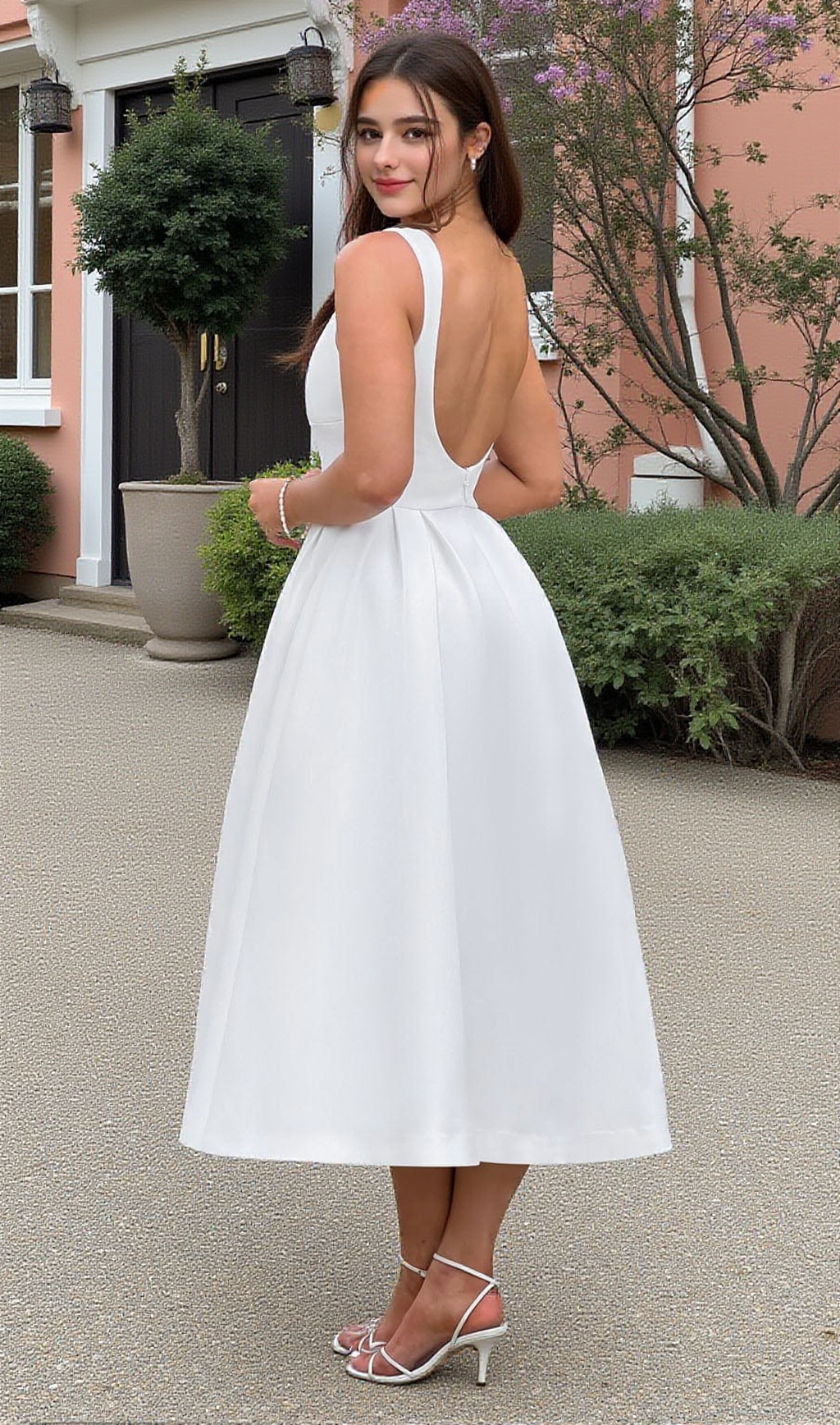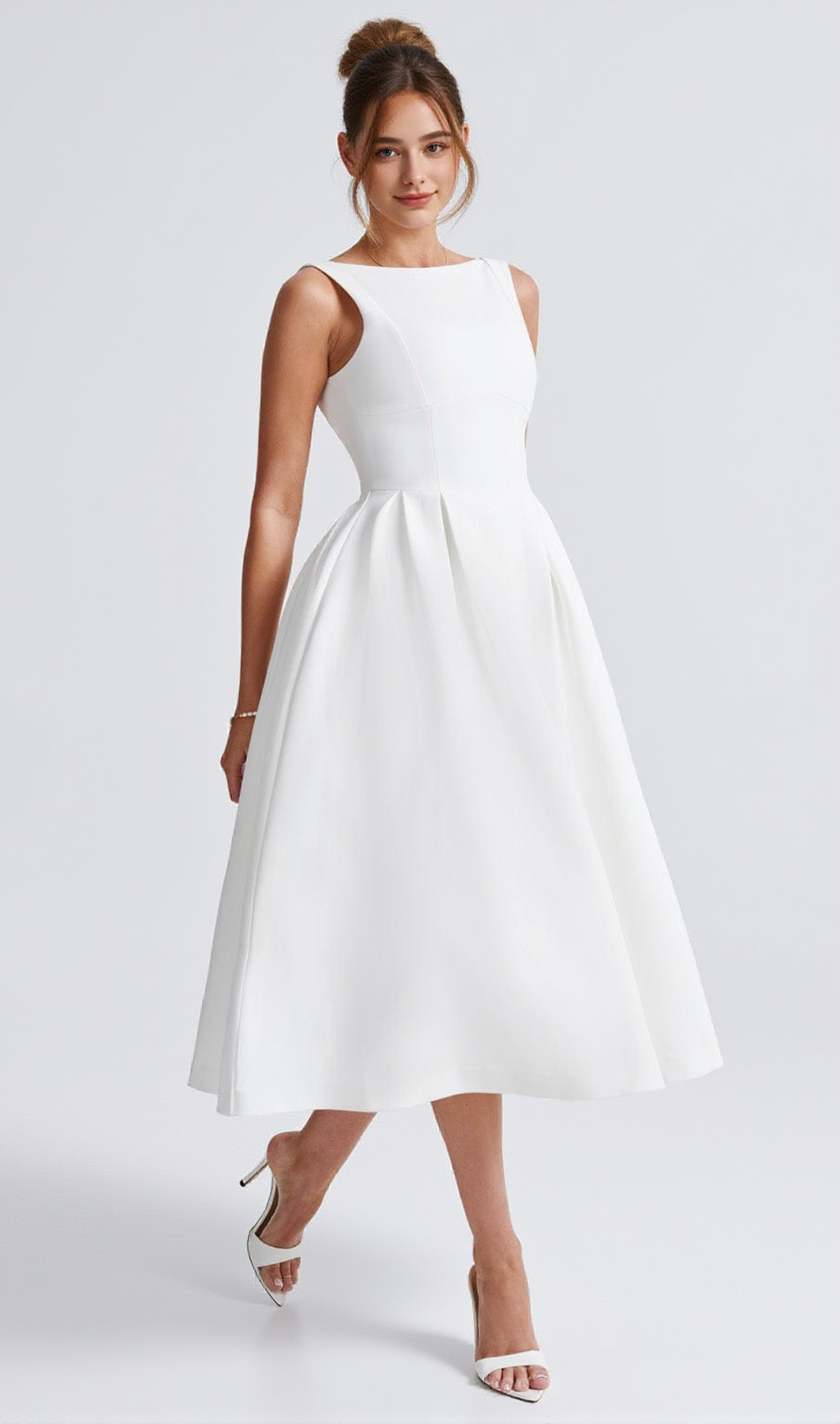 Clarabella sleeveless Midi Dress in white