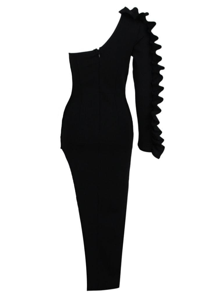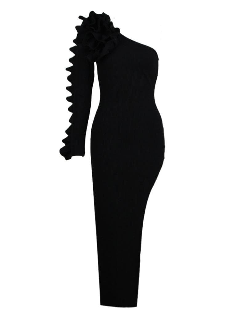 Cliet One Shoulder Ruffle Asymmetric Knit Dress
