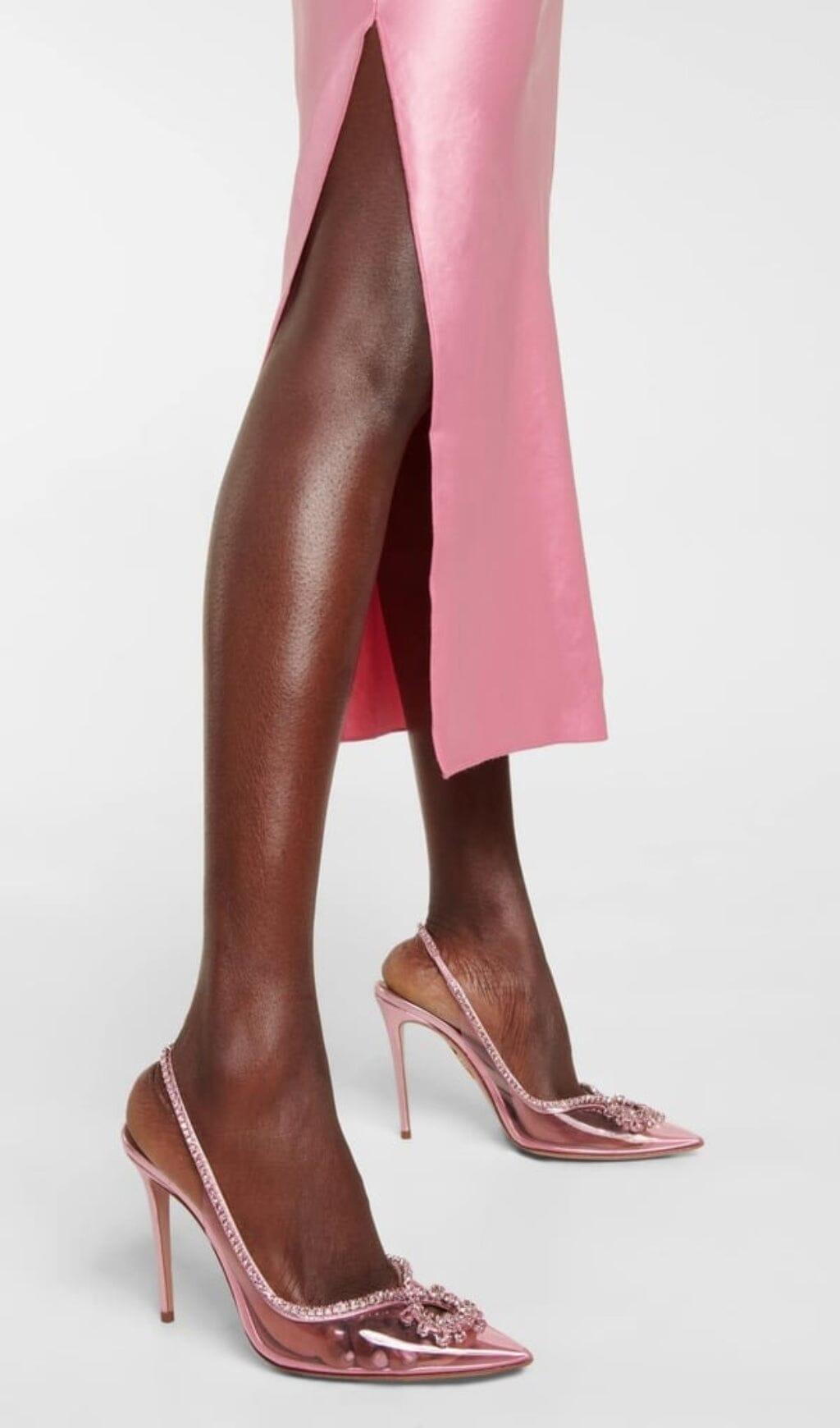 CRYSTAL CUTOUT EMBELLISHED PUMPS IN PINK