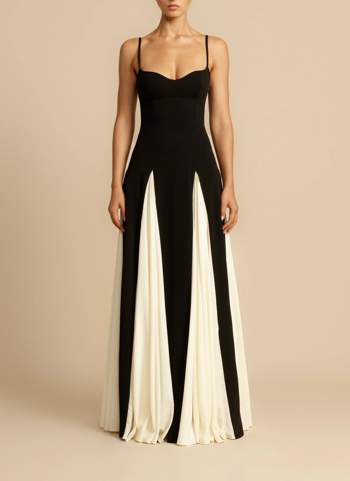 Clotilde Contrast Color Suspender Maxi Dress In Black