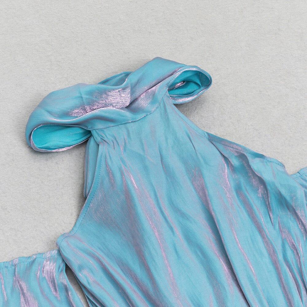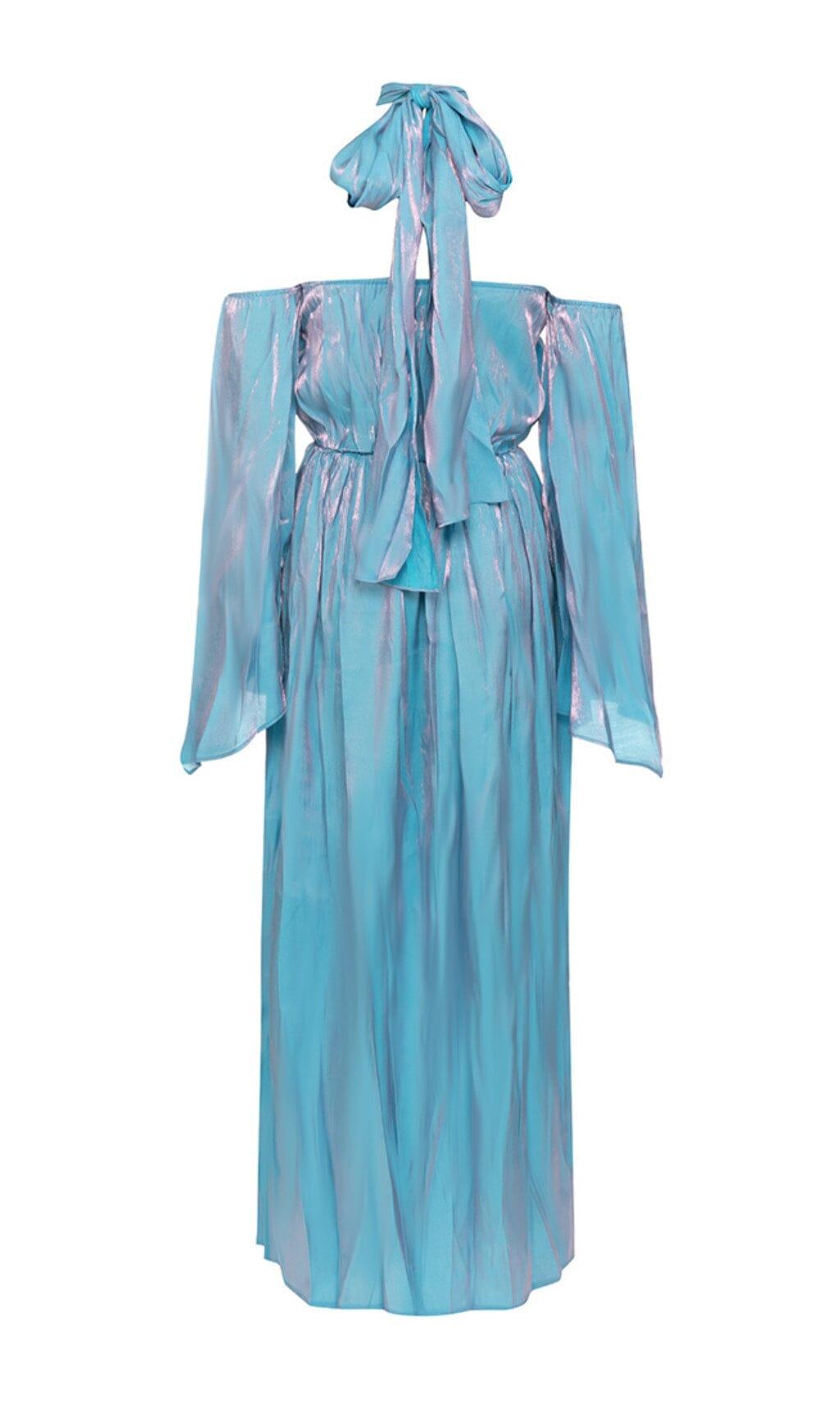 COLD SHOULDER RUMPET SLEEVE MIDI DRESS