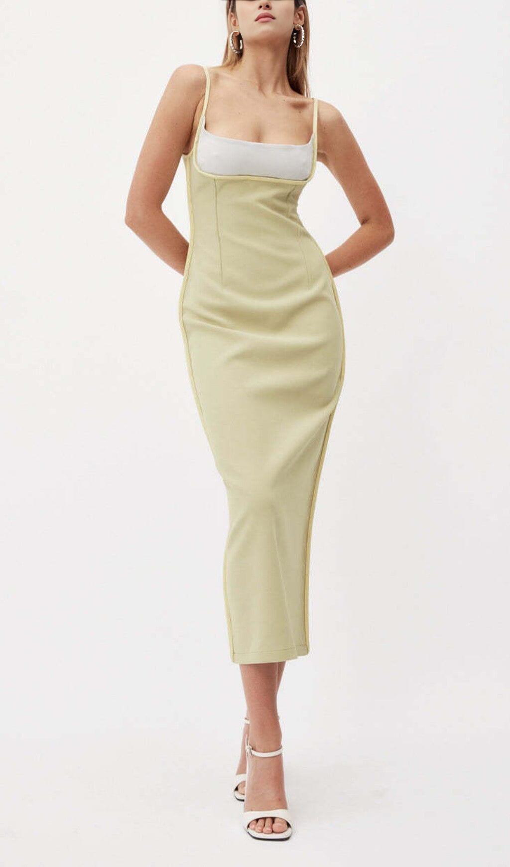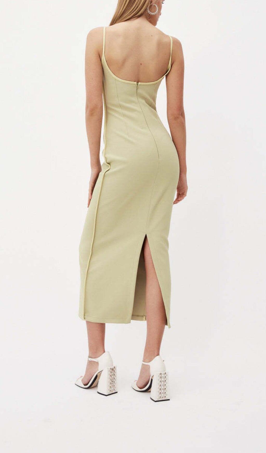 COLOR BLOCK SUSPENDER MIDI DRESS IN LETTUCE GREEN
