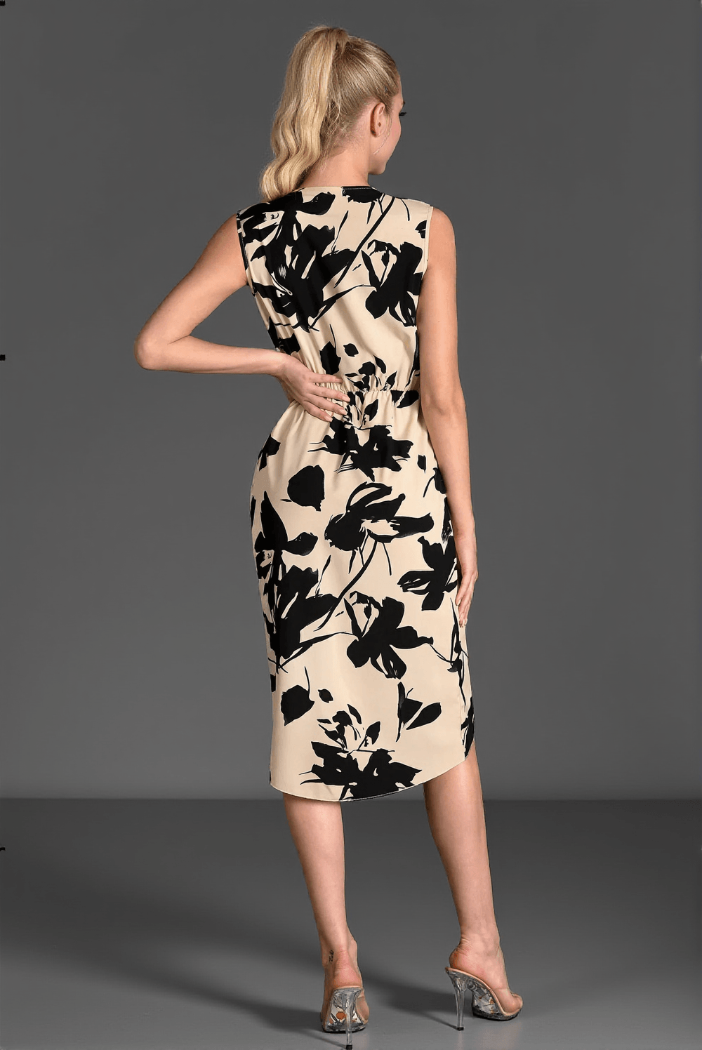 The Comelli Sleeveless Print Pleated Dress invites you to step into a world of elegance and charm. This dress not only serves as an eye-catching piece for special occasions but also offers versatility, making it perfect for various events from casual outings to garden parties.