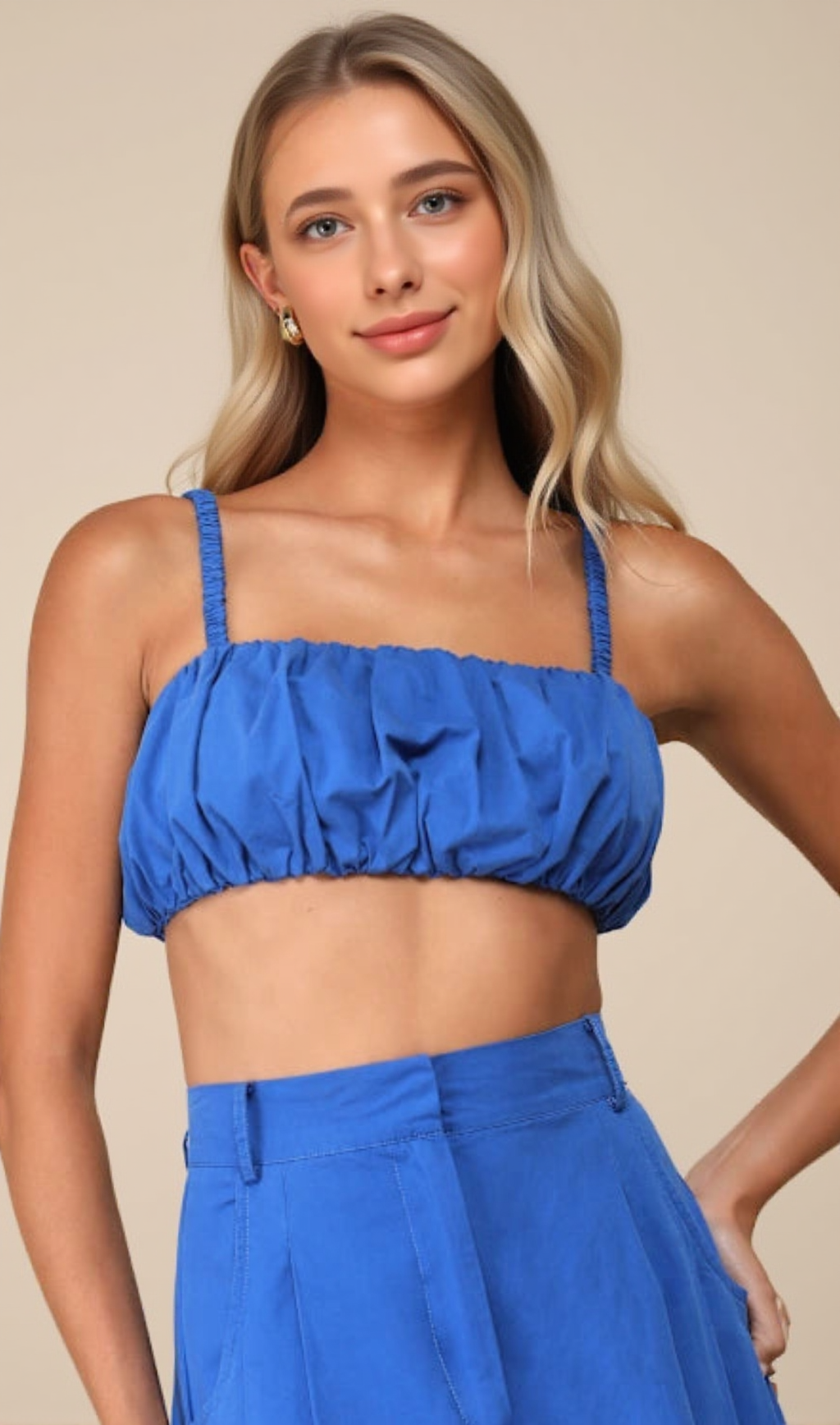 You'll always get compliments on your summer style when you wear the Compelling Aesthetic Blue Ombre Two-Piece Sleeveless Midi Dress! Lightweight woven cotton shapes this effortless two-piece dress that has an elasticized, cropped bodice with scrunched elastic straps, a straight neckline, and a gathered effect throughout. Matching skirt has an A-line silhouette, with a high waist, belt loops, front diagonal pockets, and a hidden zip fly with top clasp closure. A chic, lavender-toned ombre effect accents the midi hem.