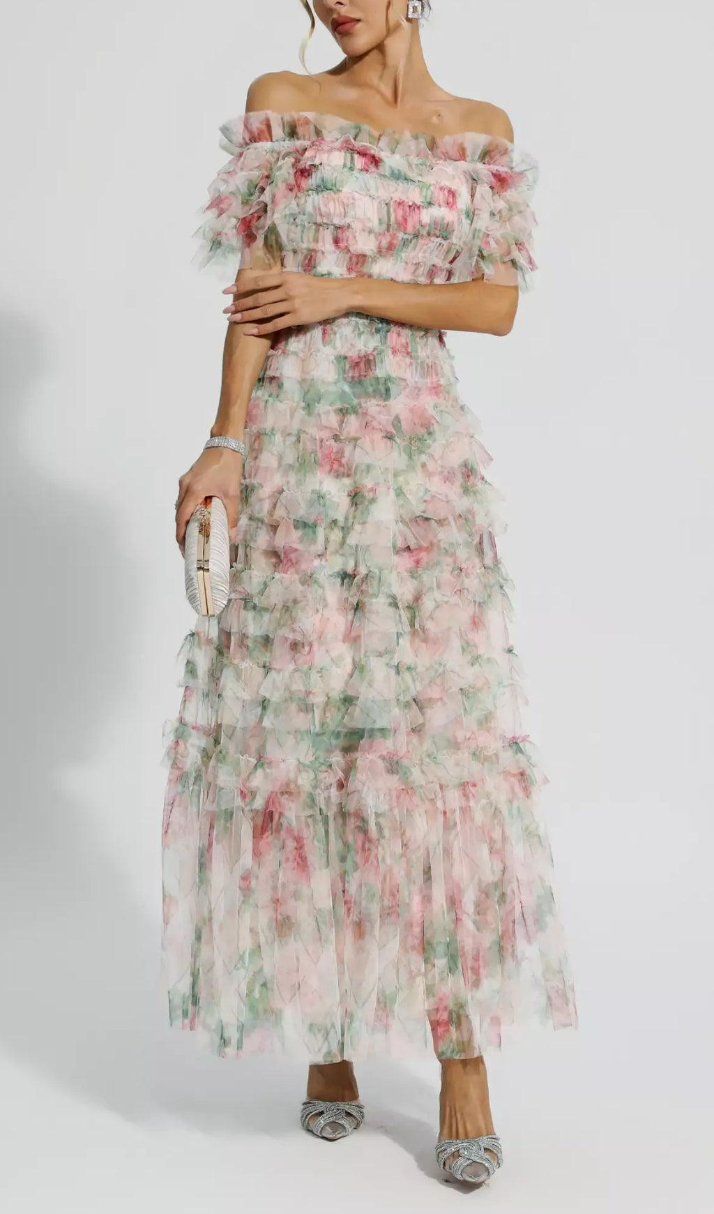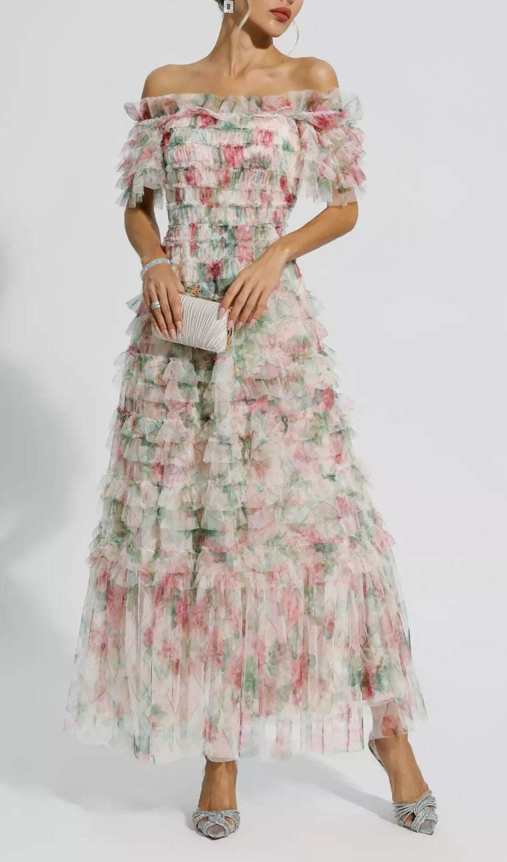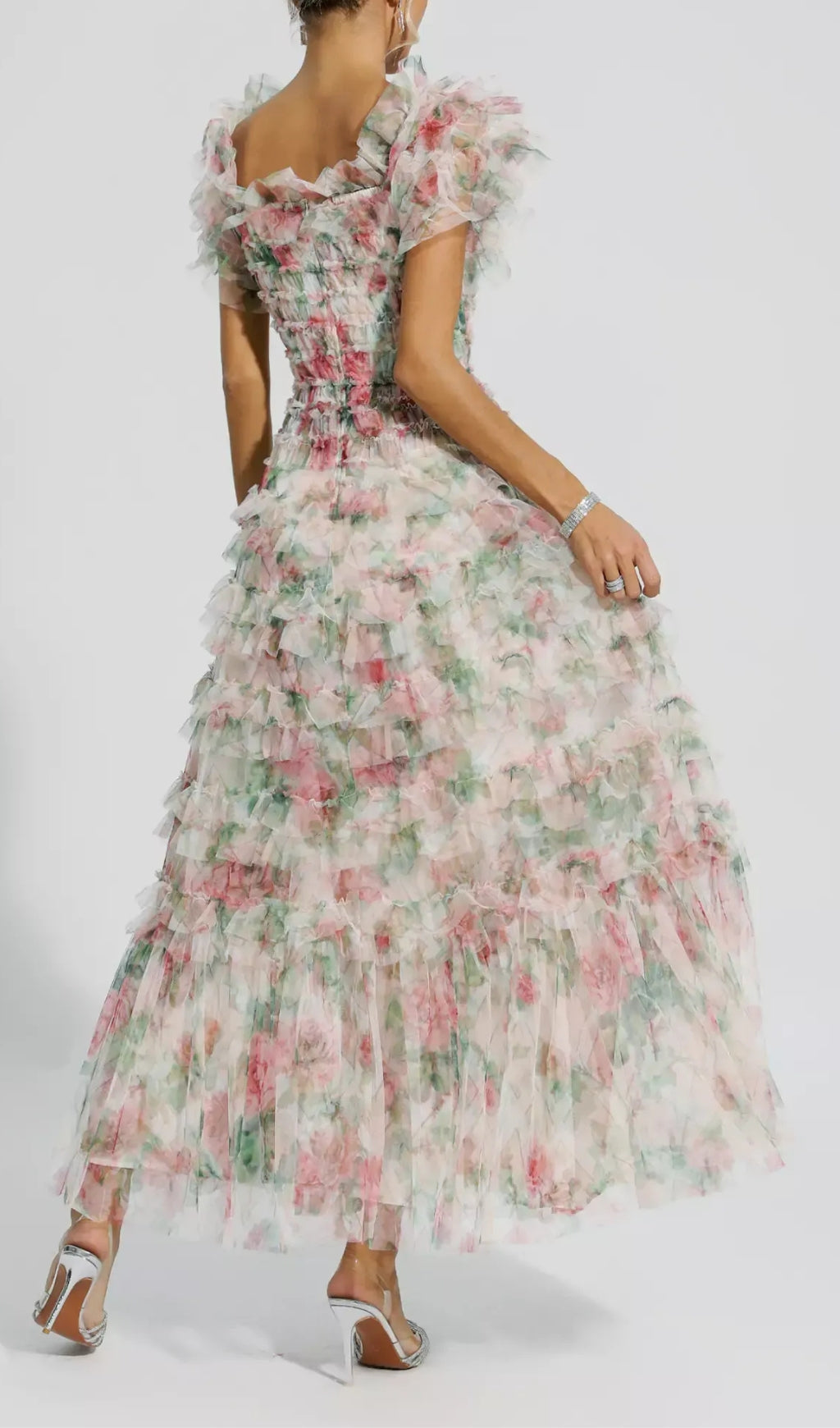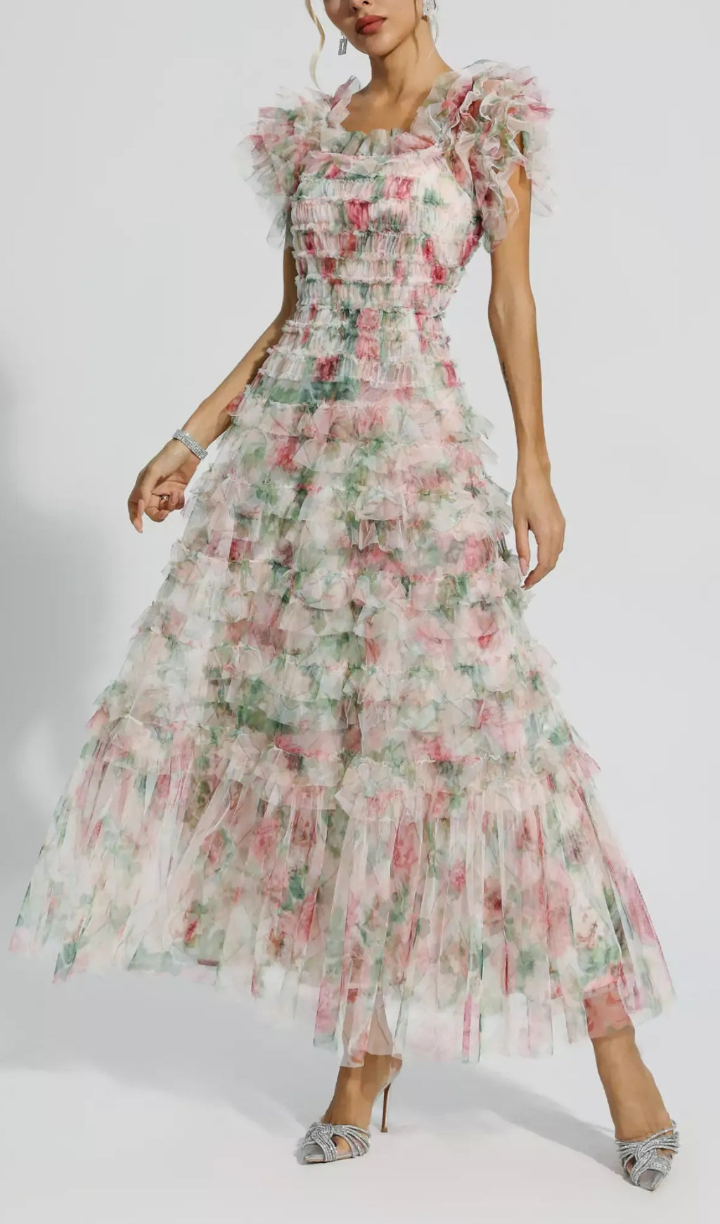 Make this Pink Ruched Floral Maxi Dress your new wardrobe favorite! The square neck design shows off your collarbone and neck lines. At the same time, the sweet floral pattern is all over the dress, giving people a fresh and natural feeling. In addition, this dress also has the characteristics of slimming the waist, allowing you to easily outline your graceful figure curves. Suitable for wedding, party or dinner.