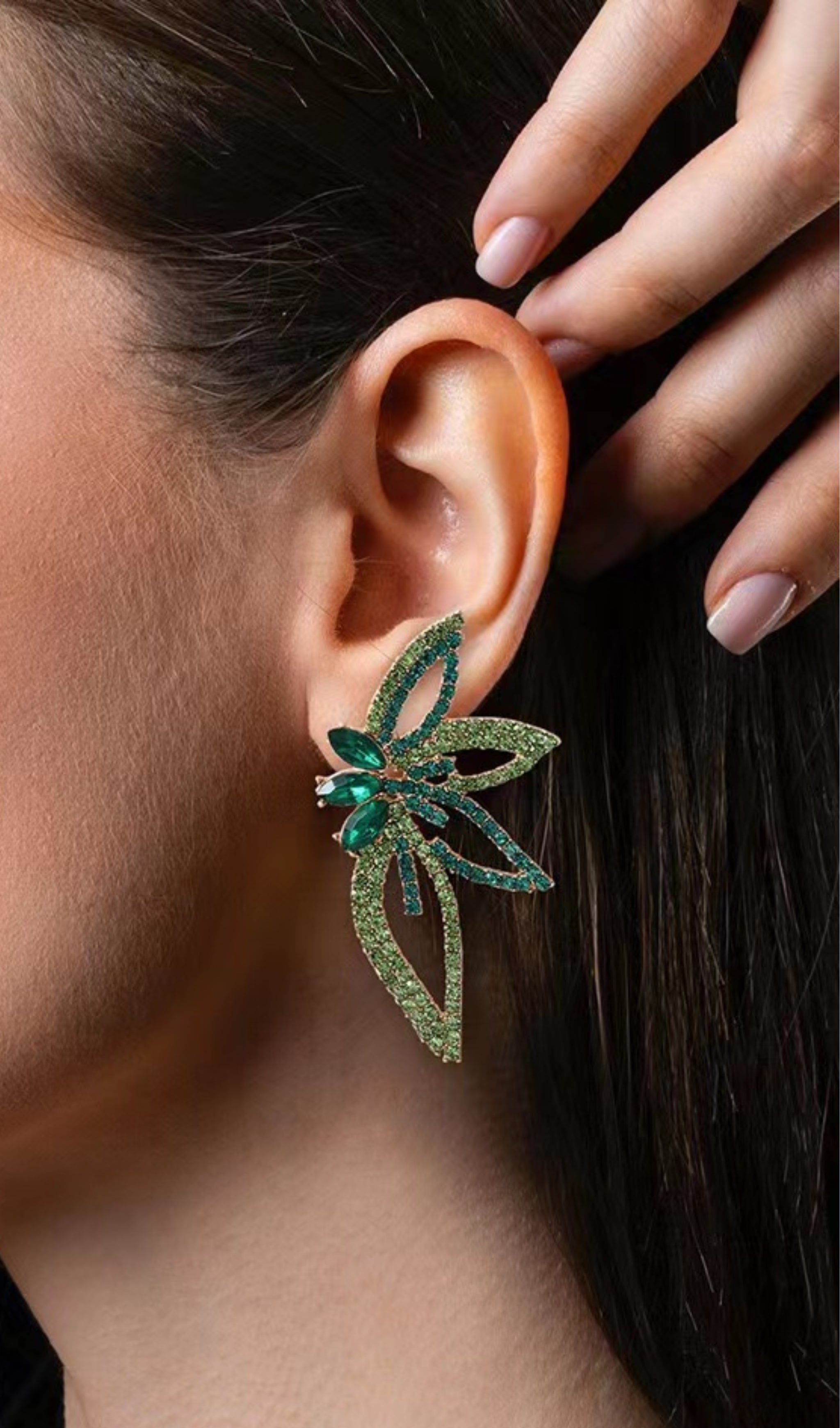 ANASTACIA GREEN CRYSTAL FLOWER EARRINGS