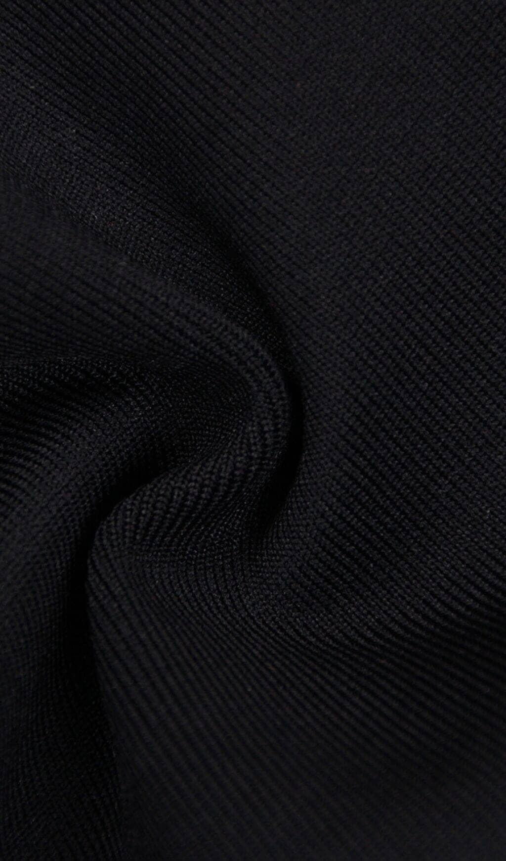 The dress is made from a stretch fabric blend of 95% Polyester and 5% Elastane. This ensures a comfortable fit that moves with your body and retains its shape wear after wear. To keep it looking its best, we recommend gentle dry cleaning only.