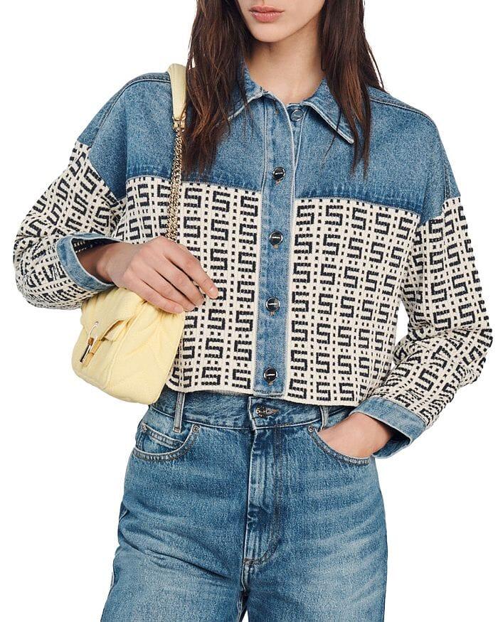 CORDOUE LOGO JACQUARD DENIM CROPPED JACKET