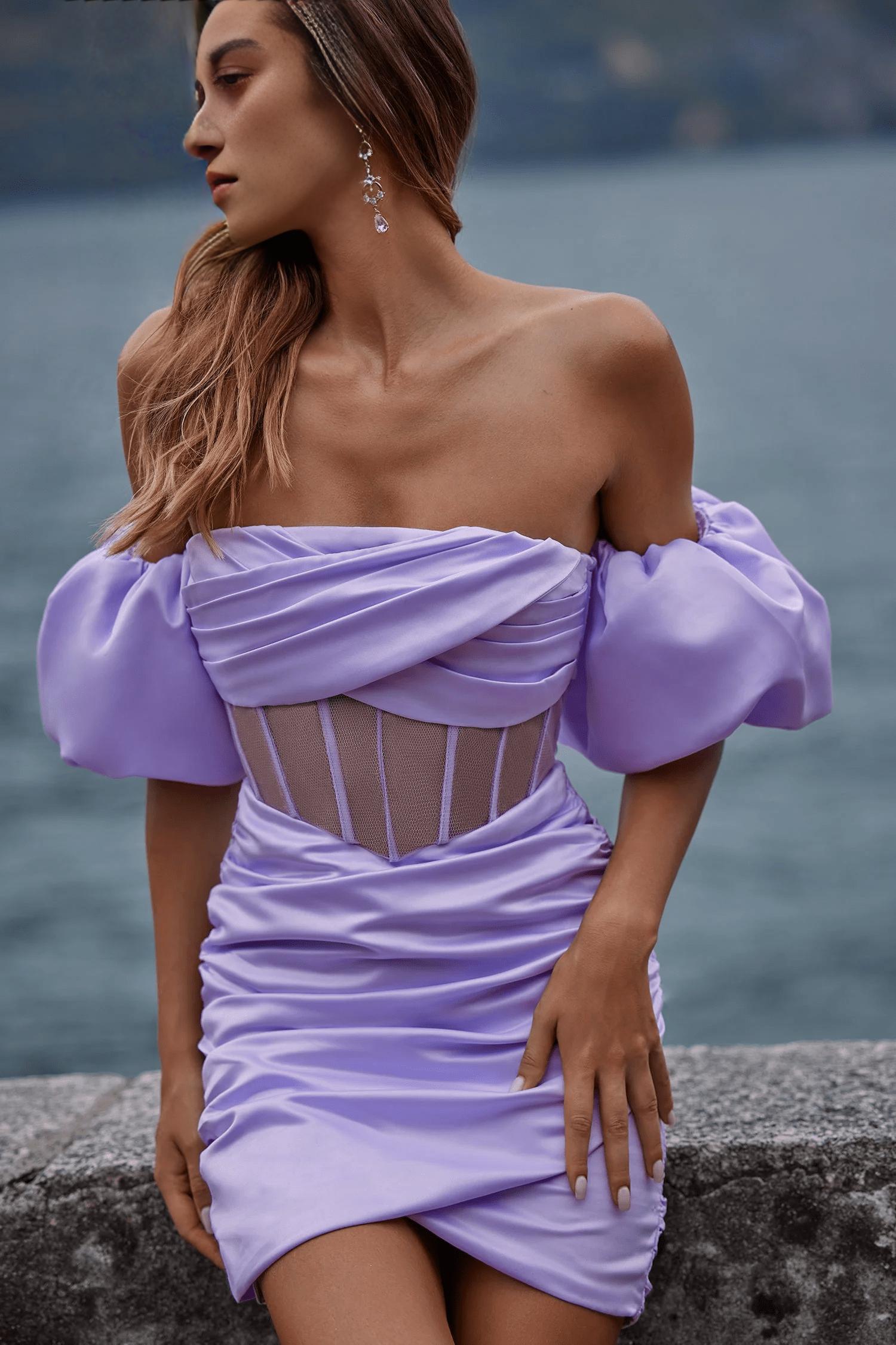 The CORSET SATIN MINI DRESS IN PURPLE is the epitome of style and elegance. With its unique design elements and high-quality materials, this dress is perfect for any special occasion.