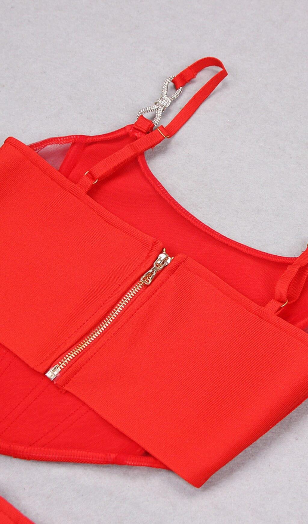 CORSET WIDE-LEGGED TWO-PIECE SUIT IN RED