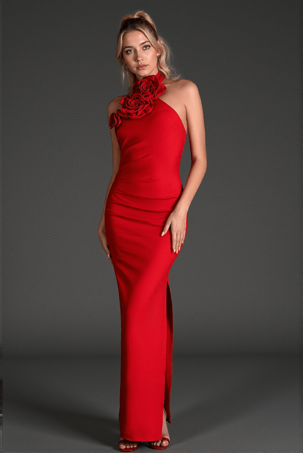 • Sleek Silhouette: A halter neckline and ruched detailing at the waist flatter your body's natural curves while maintaining a sleek look.