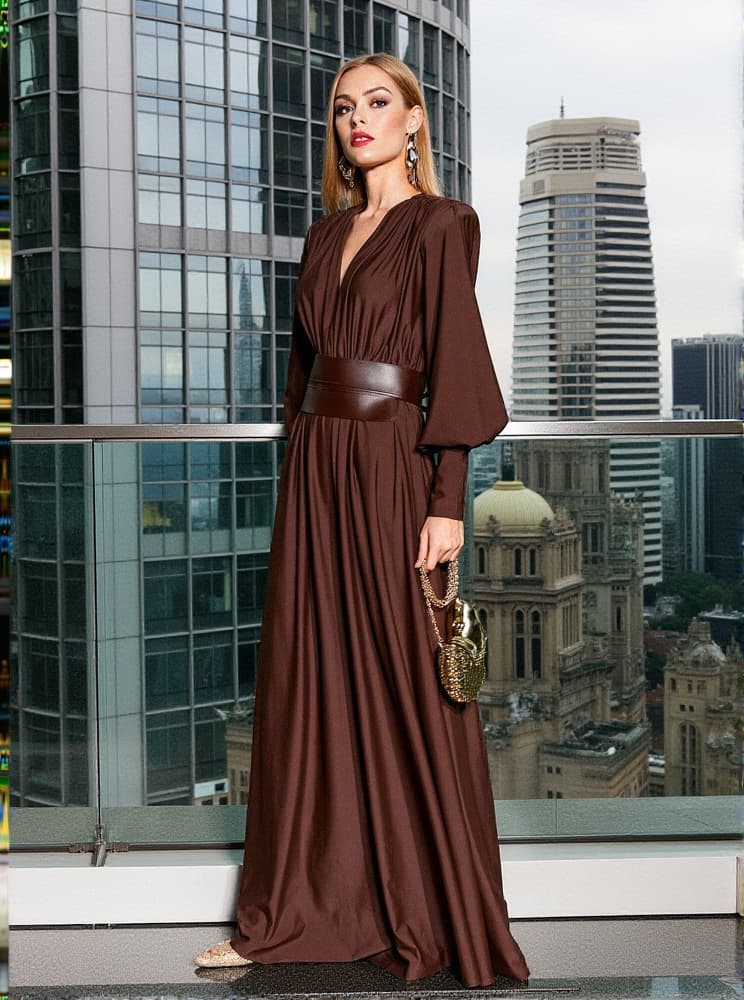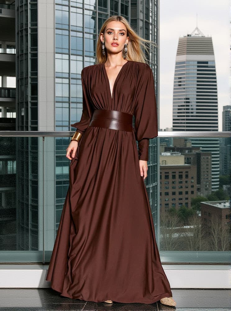 Cosmo V Neck Belted Maxi Dress