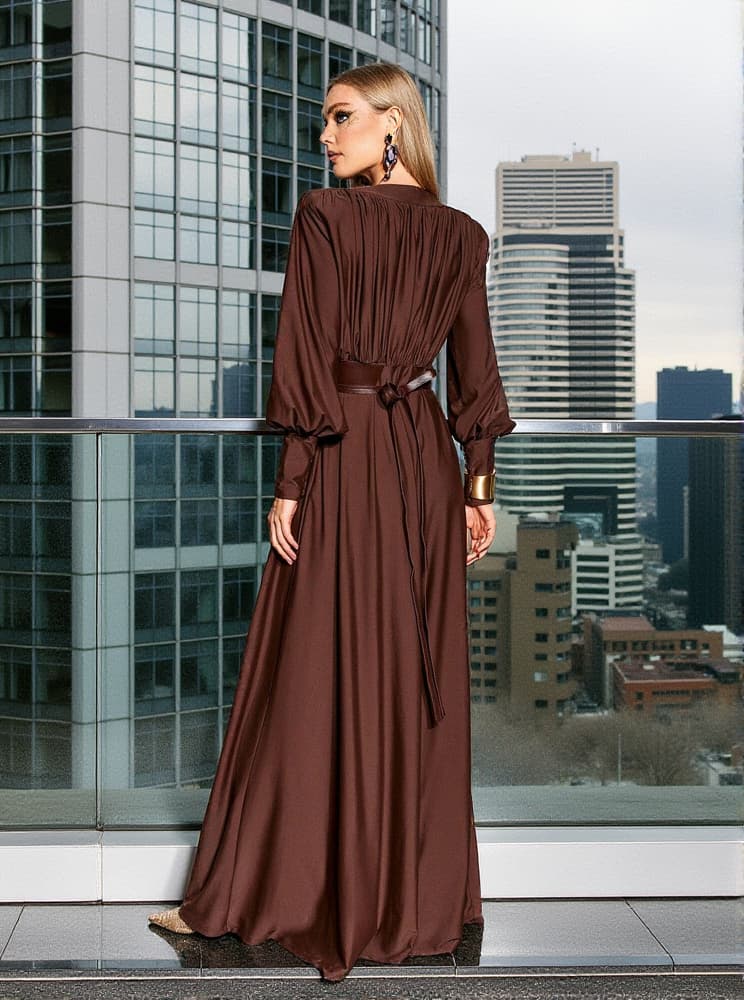 Upgrade your wardrobe with our Cosmo V Neck Belted Maxi Dress! Made with high-quality materials, this dress will make you stand out at any occasion. The elegant v-neck design and belted waist accentuate your curves, while the maxi length adds a touch of sophistication. Perfect for any fashion-forward individual.