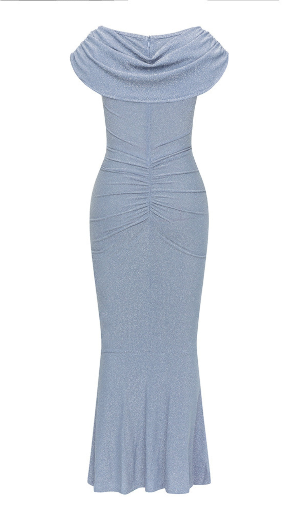 Cowl - Neck Ruched Mermaid Midi Dress in Light Blue