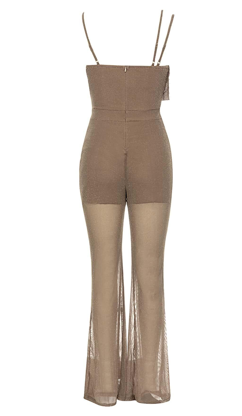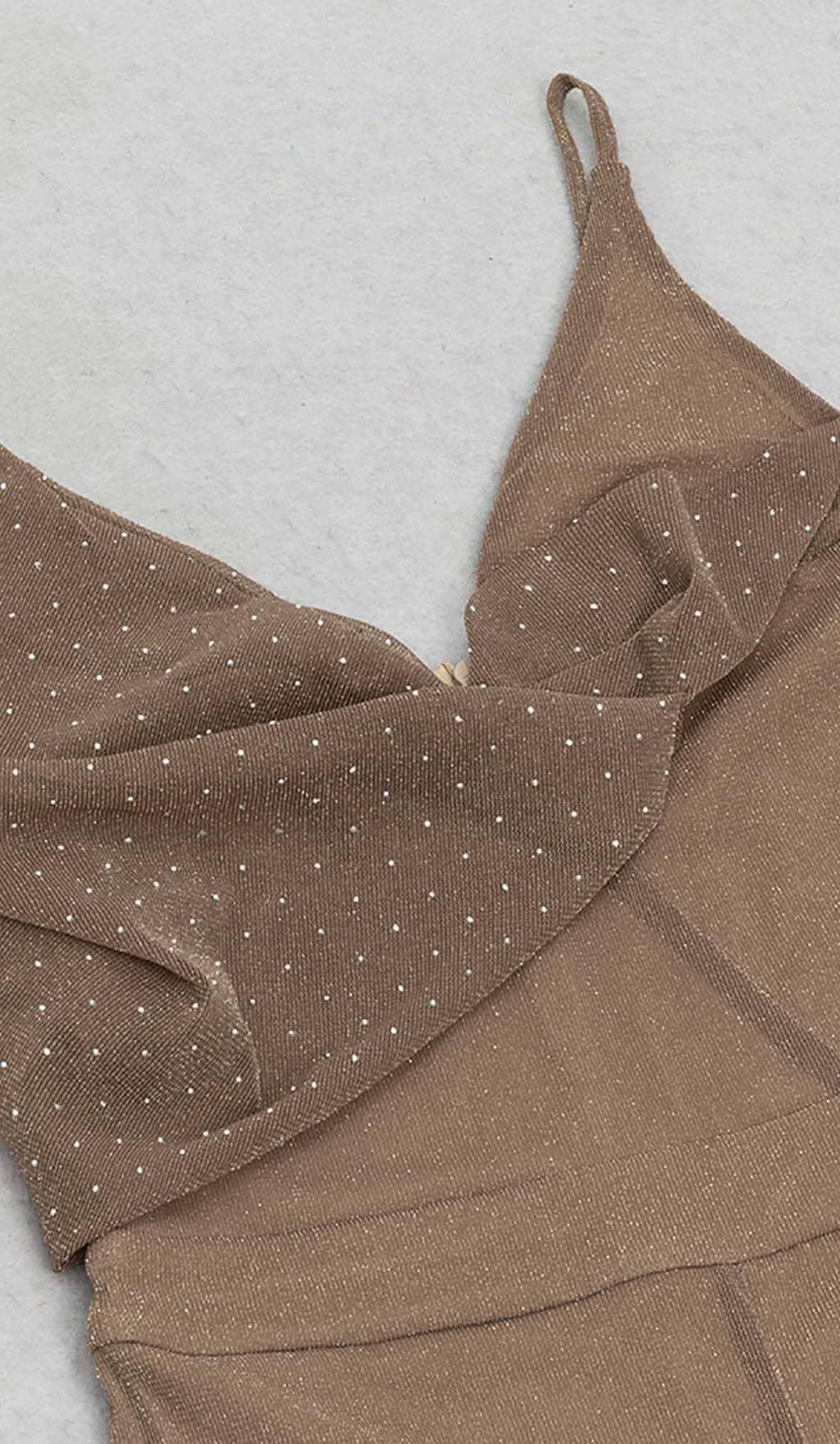 COWL-NECK SEQUIN JUMPSUIT IN KHAKI