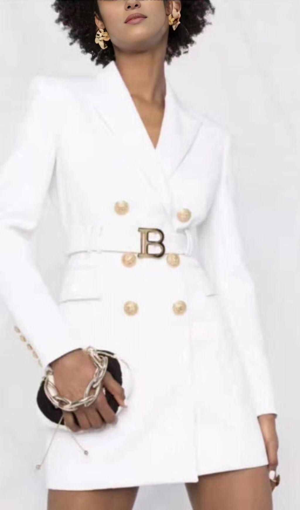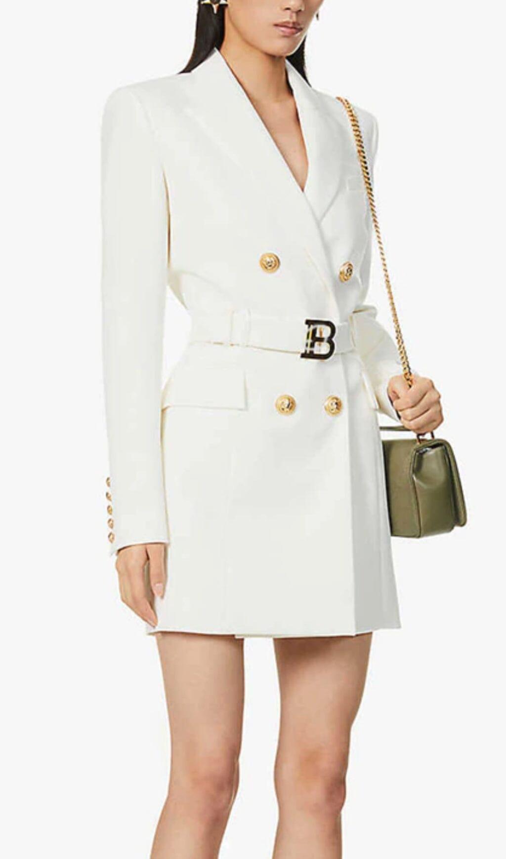 CREAM BELT METAL BUTTON MINI DRESS