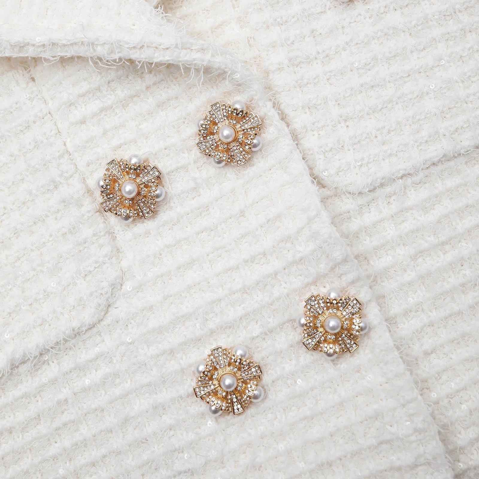 CREAM SEQUIN TEXTURED KNIT JACKET