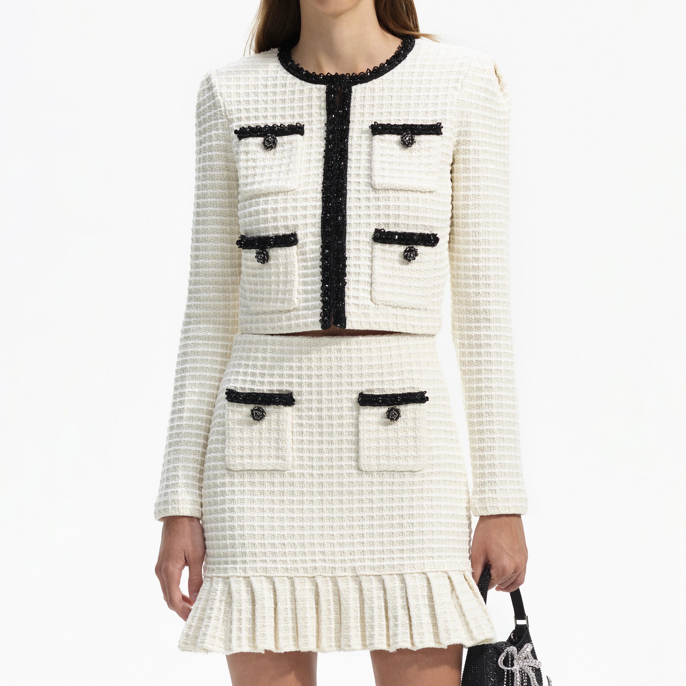CREAM TEXTURED KNIT MINI SKIRT