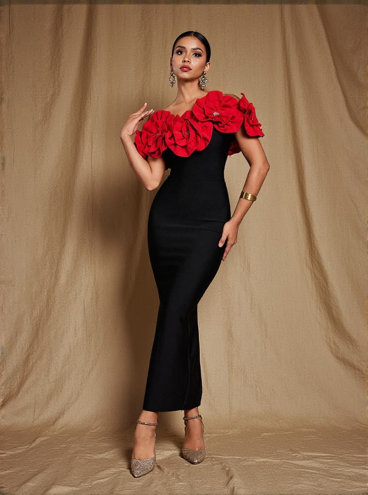 Elevate your style with our stunning Creed Off Shoulder Flower Bandage Dress. This dress features a flattering off-shoulder design and intricate flower bandage detailing. You'll feel confident and beautiful in this piece, perfect for any special occasion. Stand out from the crowd and make a powerful statement in this dress.