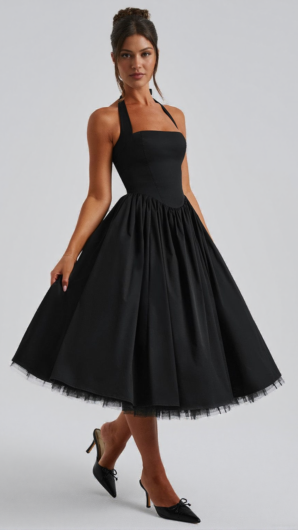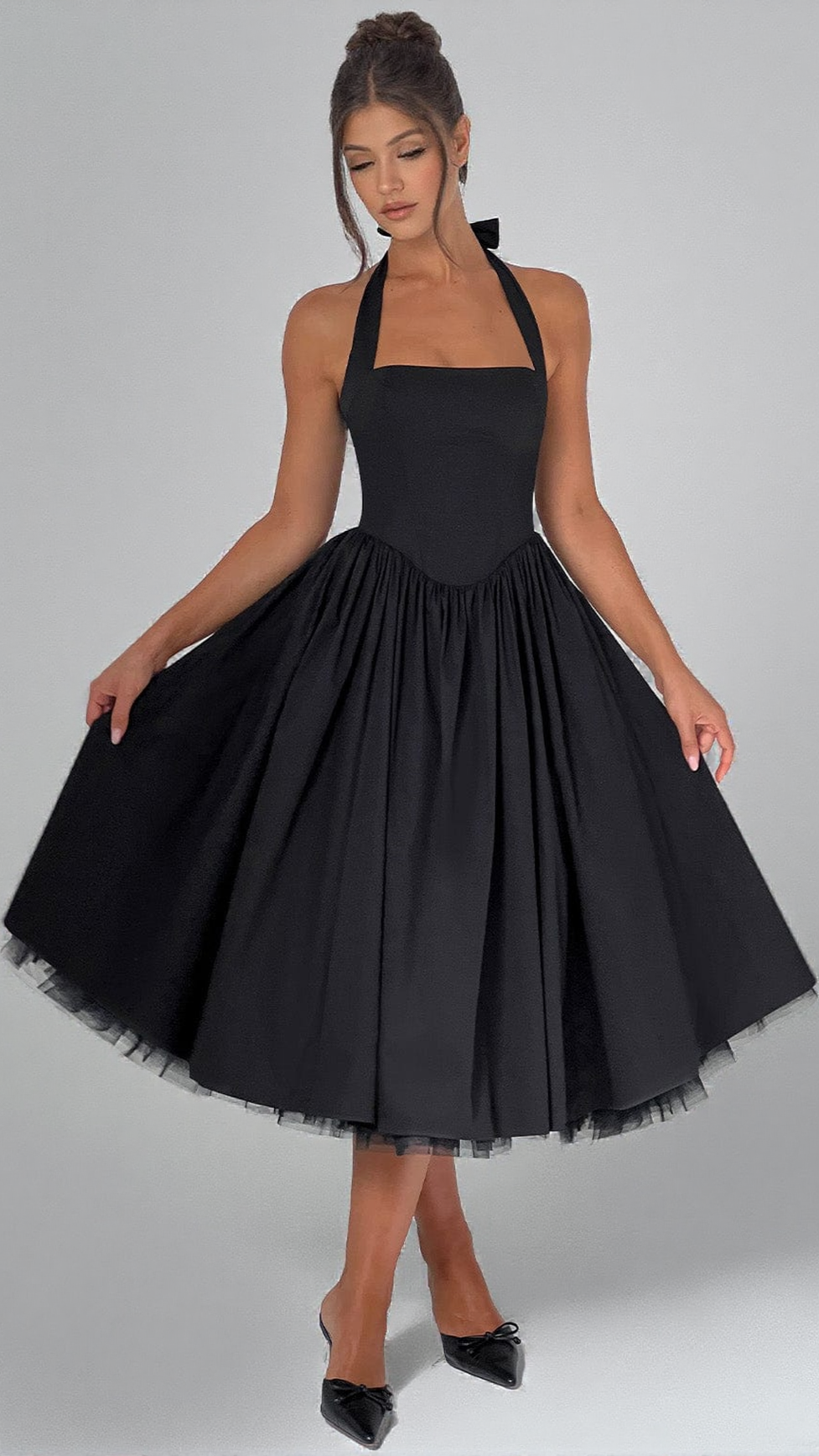 Cressida is elegant yet playful, boasting a flattering square halter neckline and princess seams to give a super flattering, snatched silhouette. The body is complemented by a full skirt with peek-a-boo tulle for added drama. The look is complete with tie back fastening and lace up back for your perfect fit.