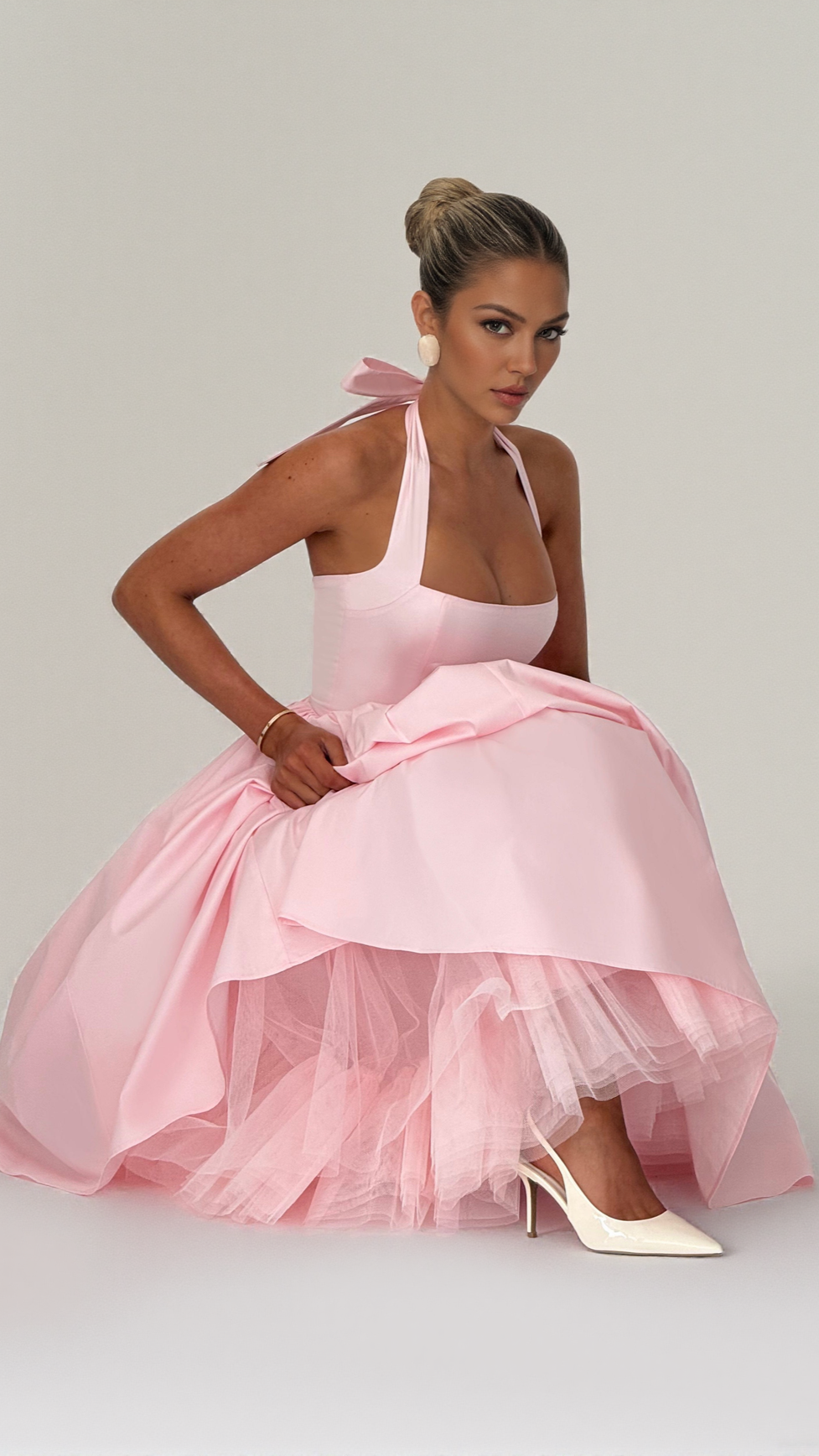 Slip into the Cressida Midi Dress and be the talk of the town! Made with non-stretch cotton nylon elastane voile, this fully lined dress features a square halter neckline and a full skirt gathered at the waist. With princess seams and an internal tulle for added volume, you'll feel like royalty. The lace up back and shirred panel add a touch of playfulness to this elegant blush dress.