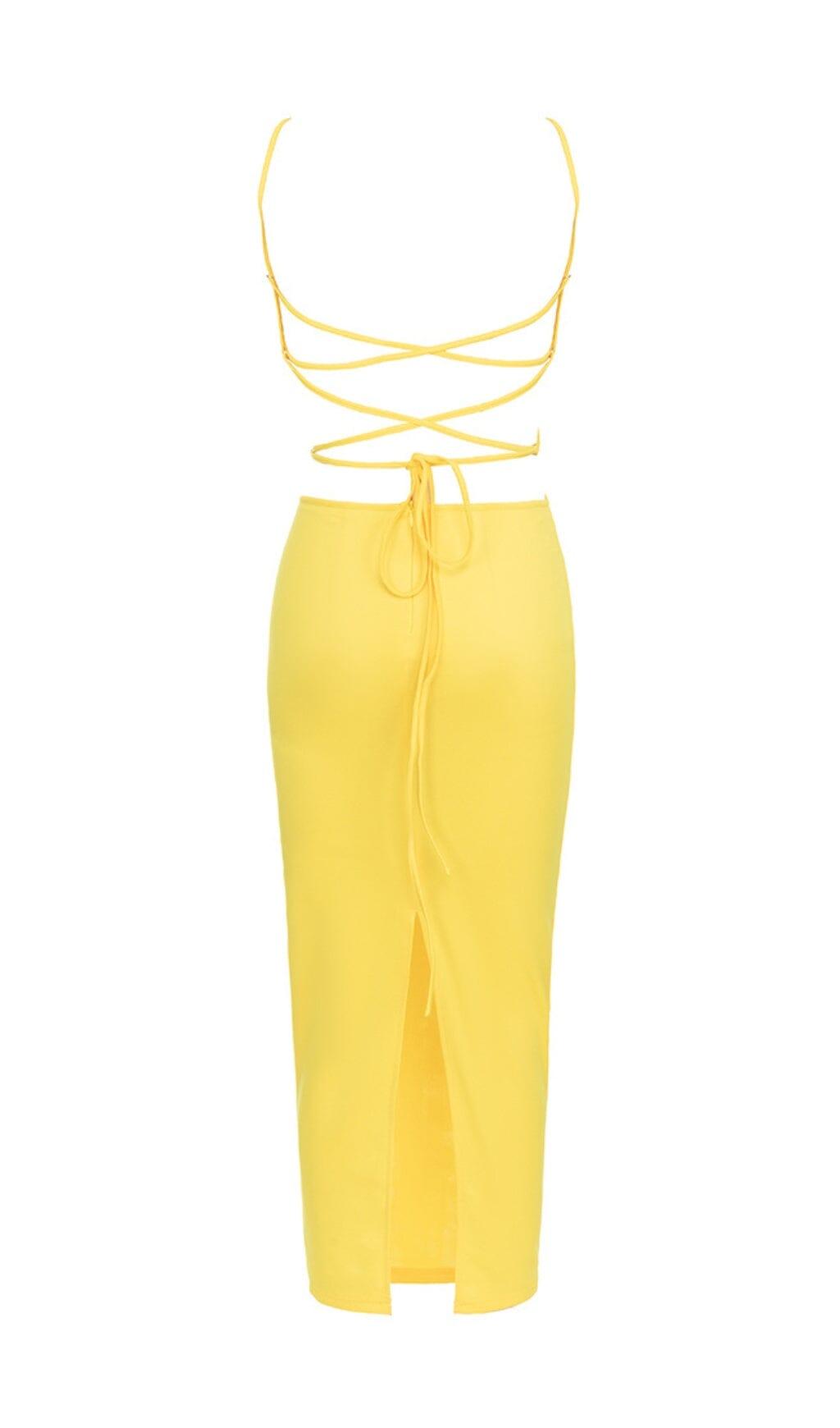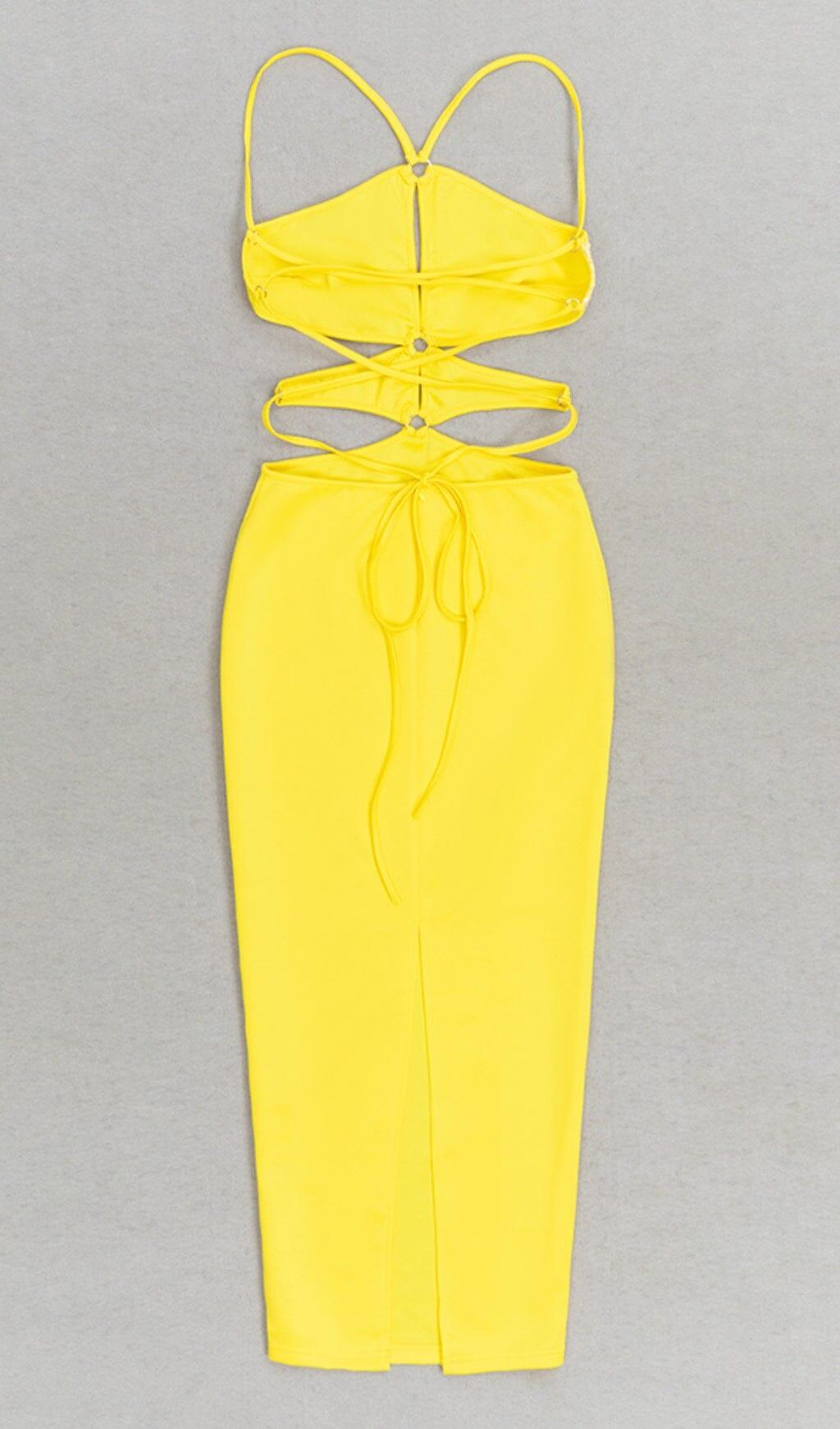 CRISSCROSS HALTERNECK CUTOUT MIDI DRESS IN YELLOW