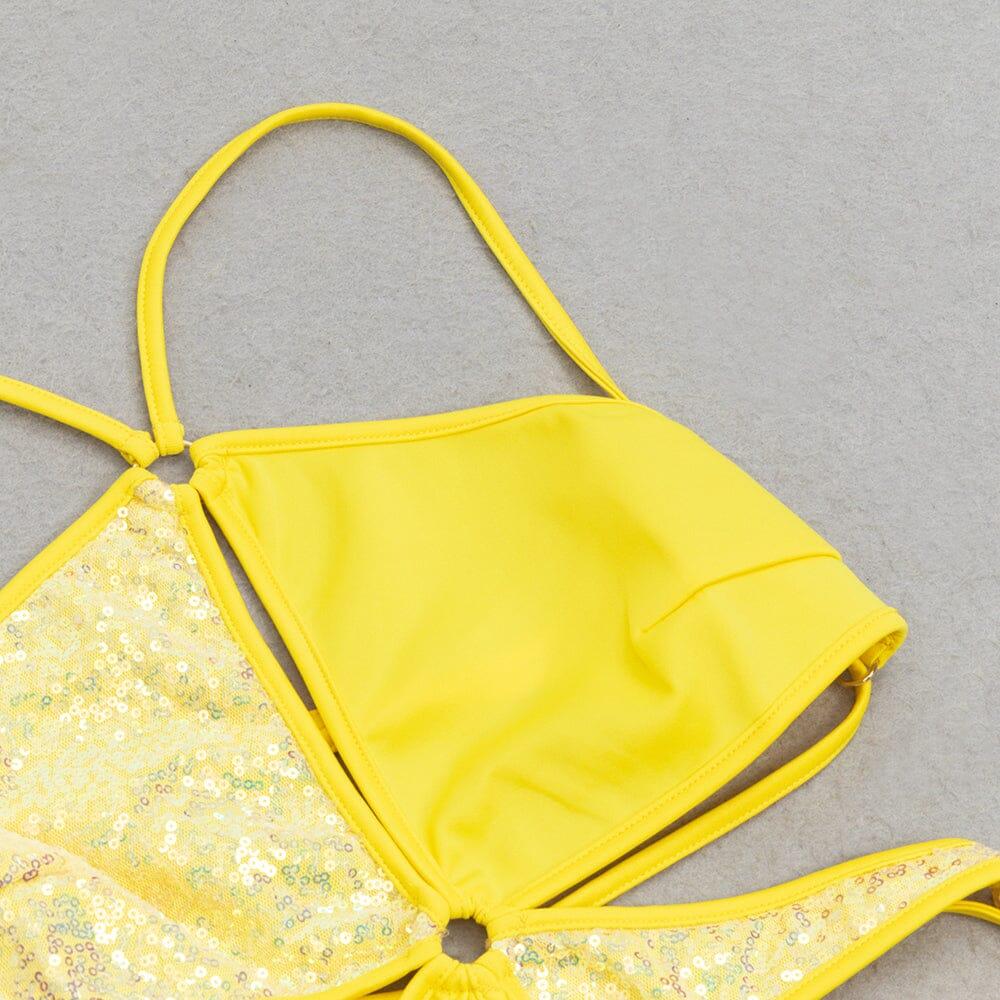 Don't settle for ordinary when you can have extraordinary. Turn heads and make a bold statement with this Crisscross Halterneck Cutout Midi Dress in Yellow. Get yours today and be ready to wow!