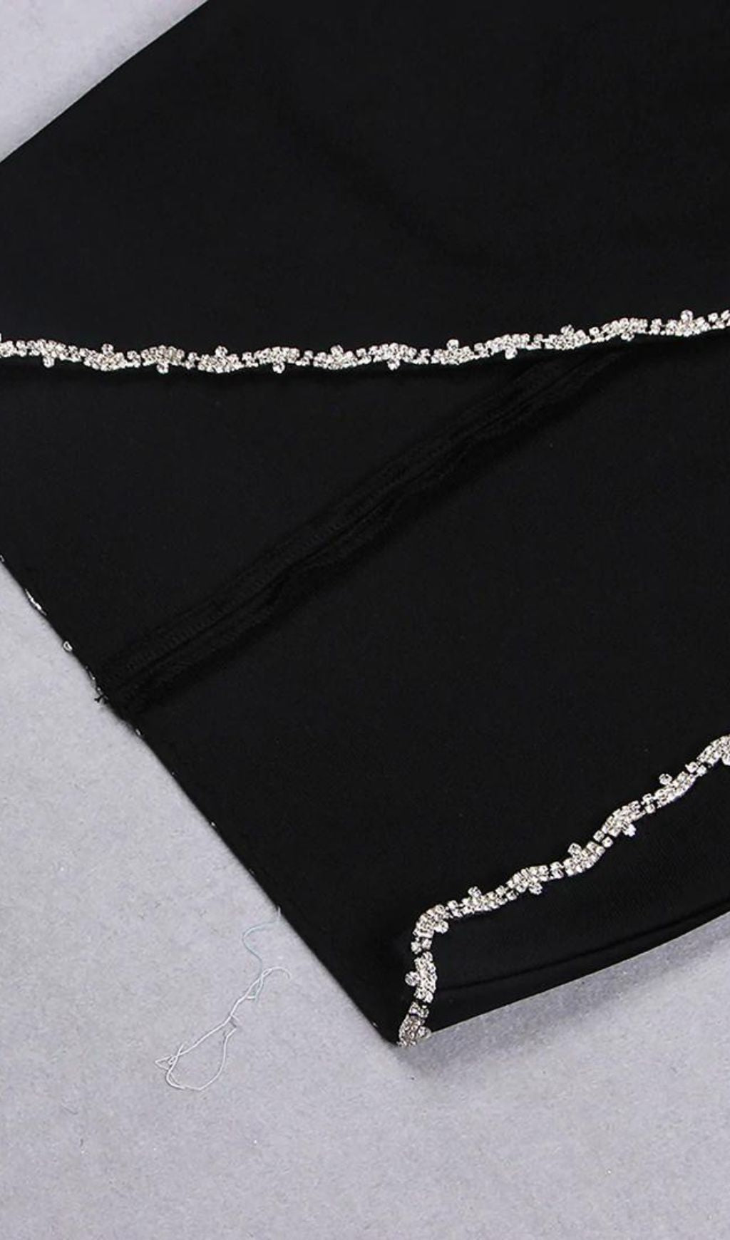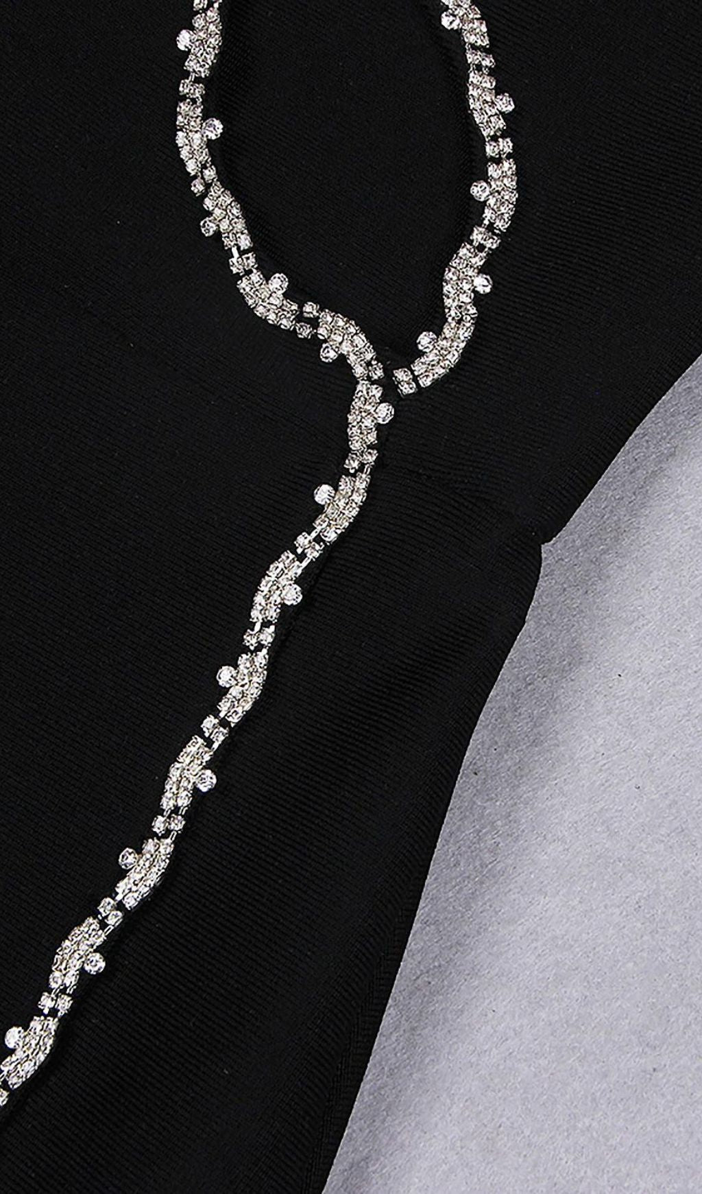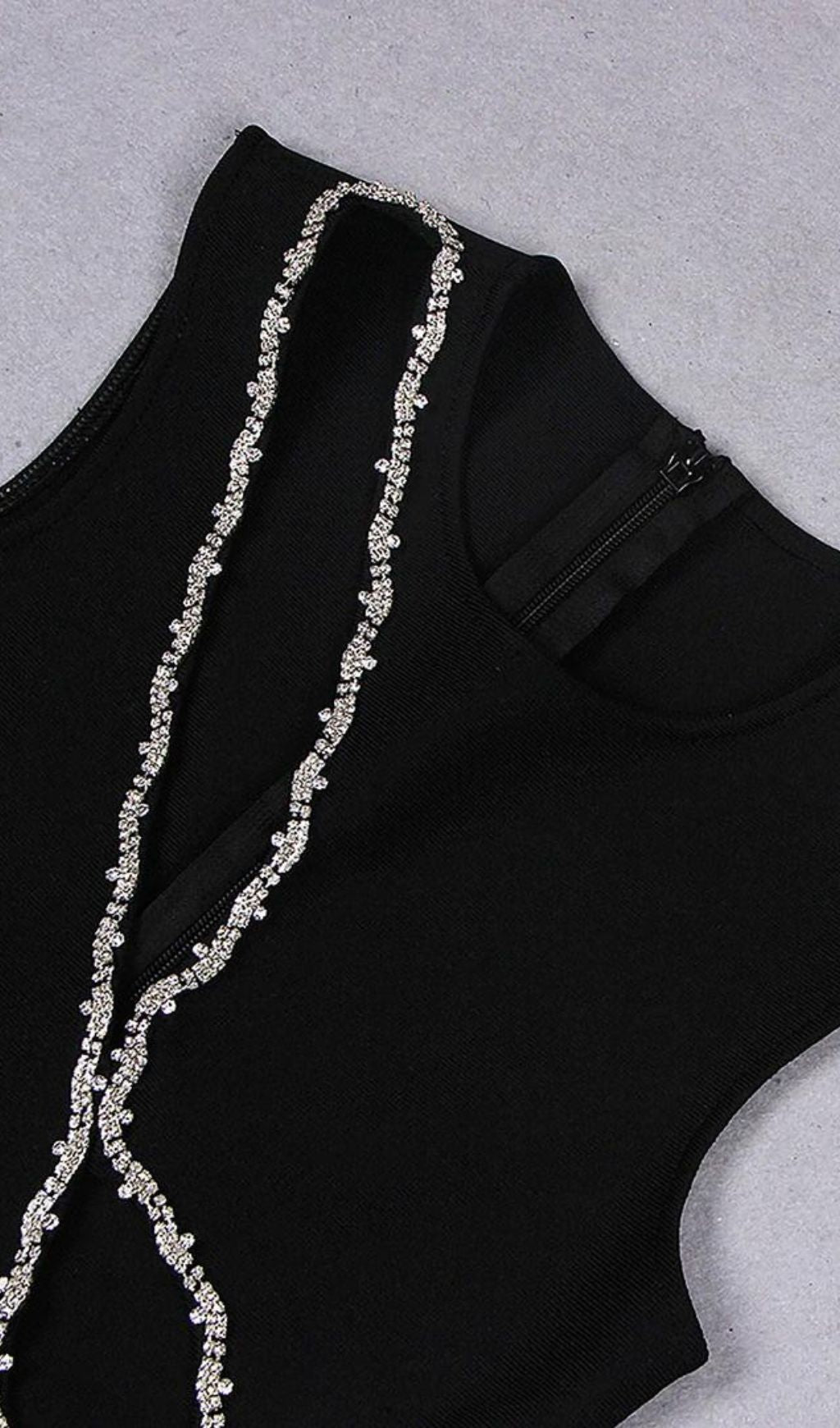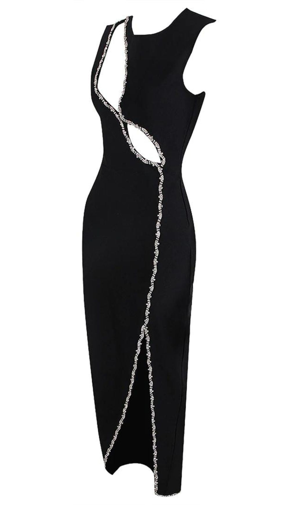 CRYSTAL CUT OUT BANDAGE MIDI DRESS IN BLACK