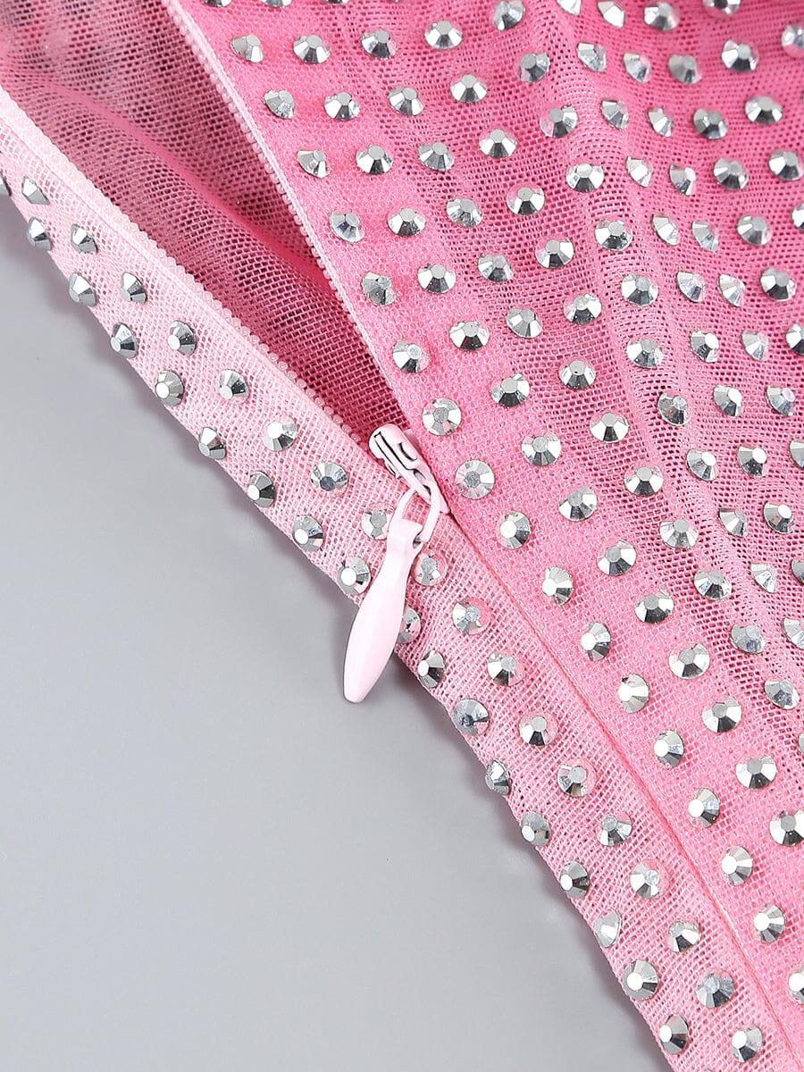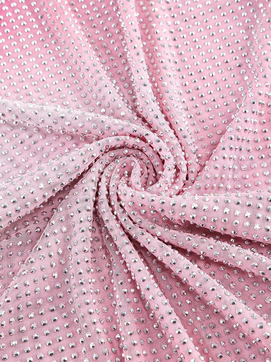 "Shine bright like a crystal in this unique midi dress. The contour print is adorned with sparkling crystals, creating a one-of-a-kind look. Elevate your style with playful elegance in this crystal-embellished dress."