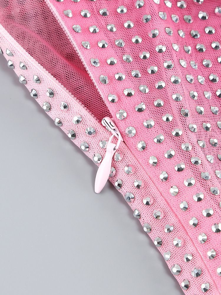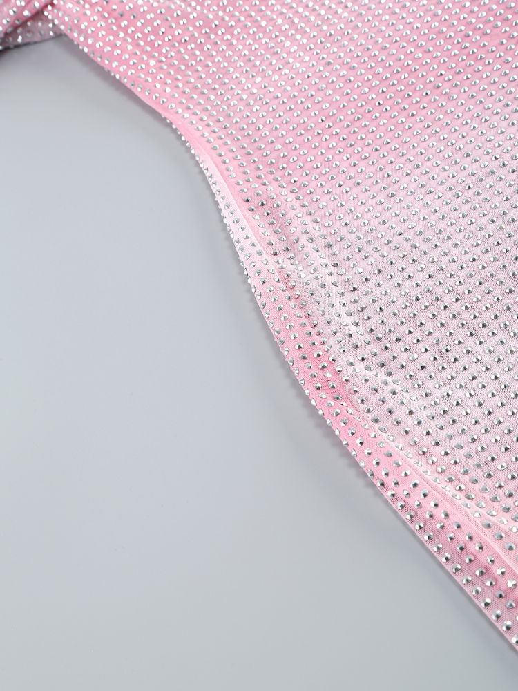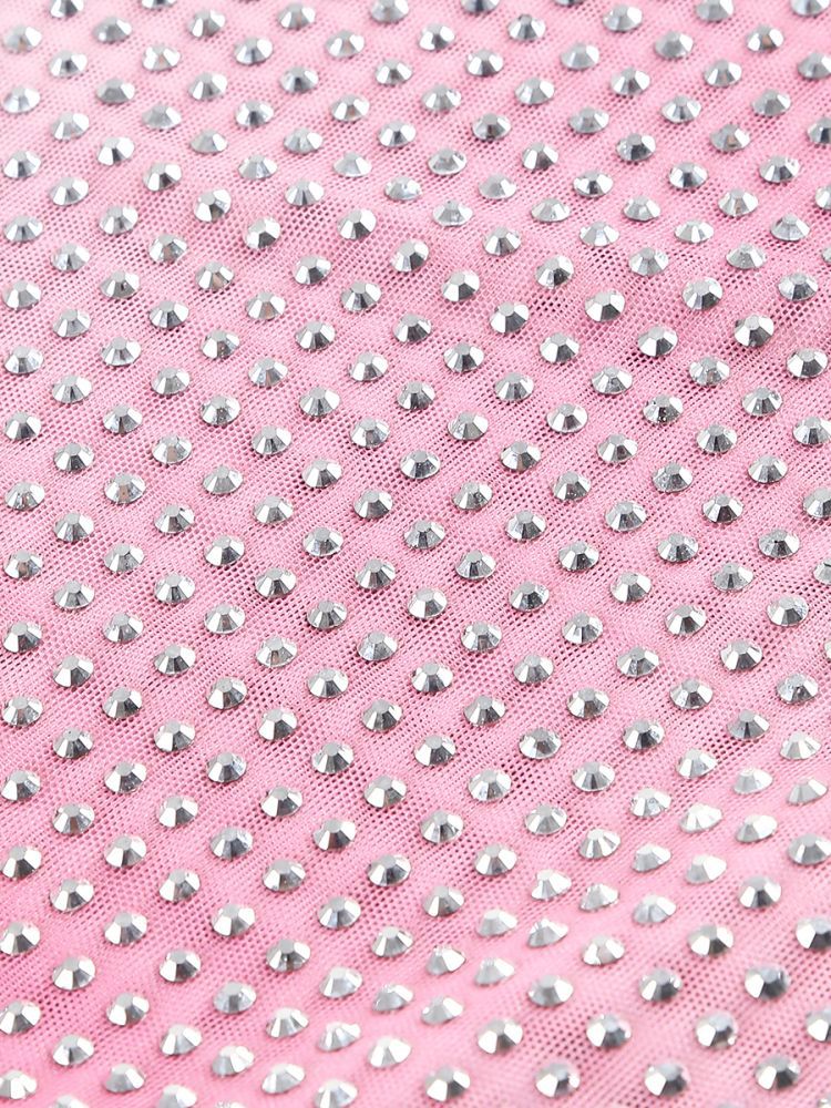 Shine bright like a crystal in this unique midi dress. The contour print is adorned with sparkling crystals, creating a one-of-a-kind look. Elevate your style with playful elegance in this crystal-embellished dress.