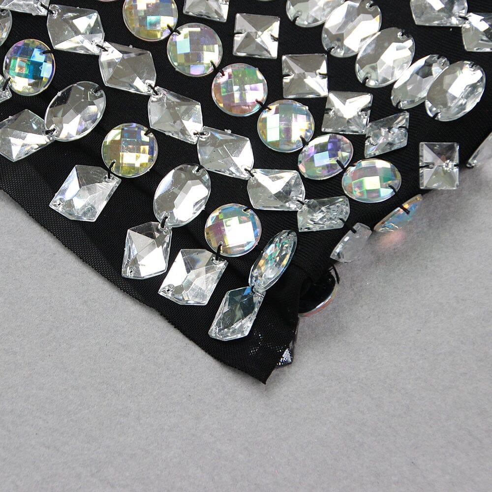This stunning dress features intricate crystal detailing that will catch the light and turn heads. The long sleeves add elegance while the mini length adds a touch of playfulness. Perfect for any special occasion, this dress will make you feel confident and stylish.