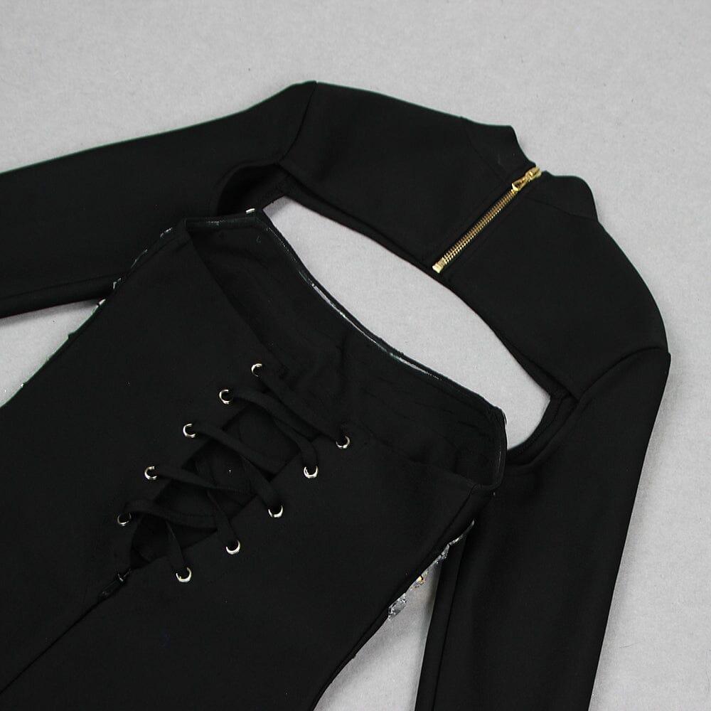 CRYSTAL EMBELLISHED LONG SLEEVE MINI DRESS
