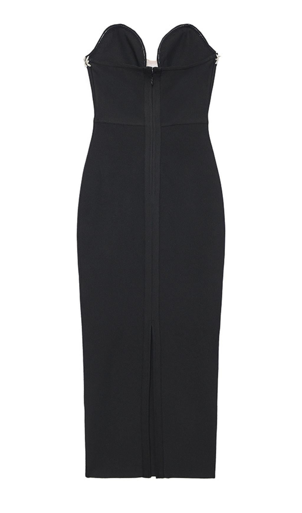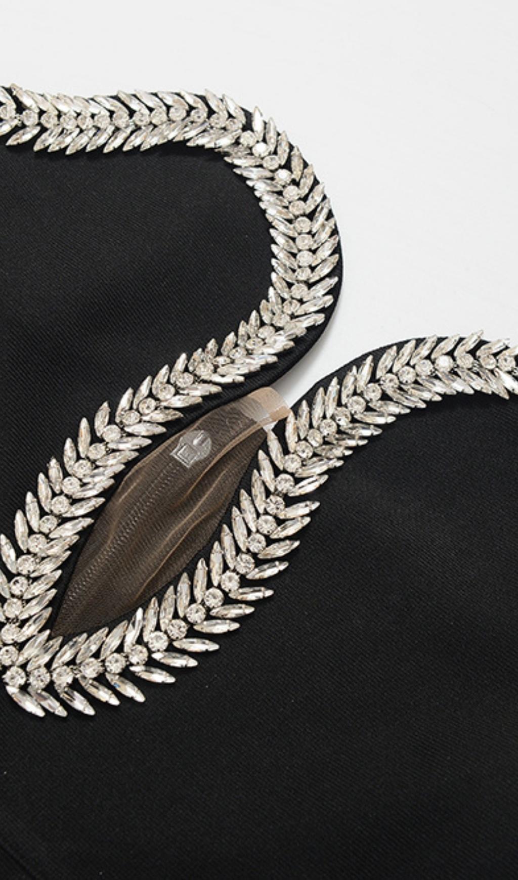CRYSTAL EMBELLISHED MIDI DRESS IN BIACK