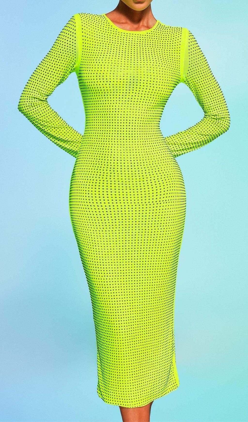 CRYSTAL EMBELLISHED MIDI DRESS IN YELLOW