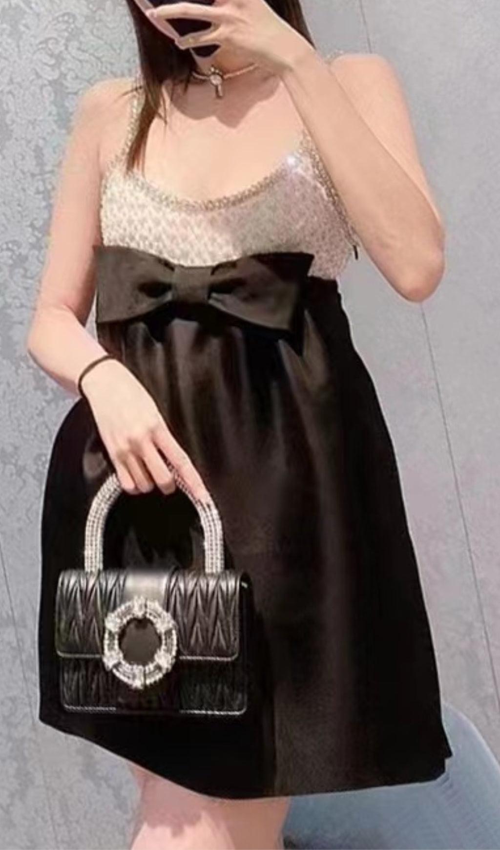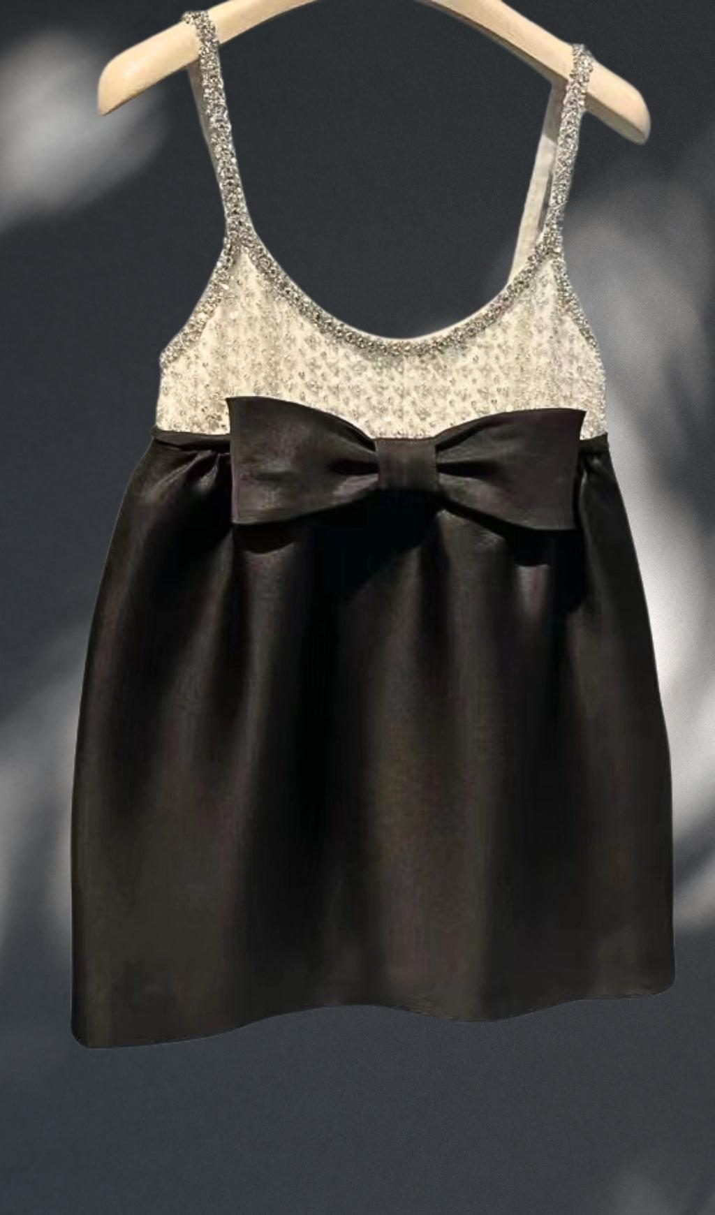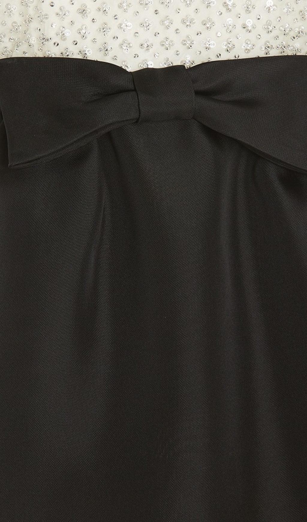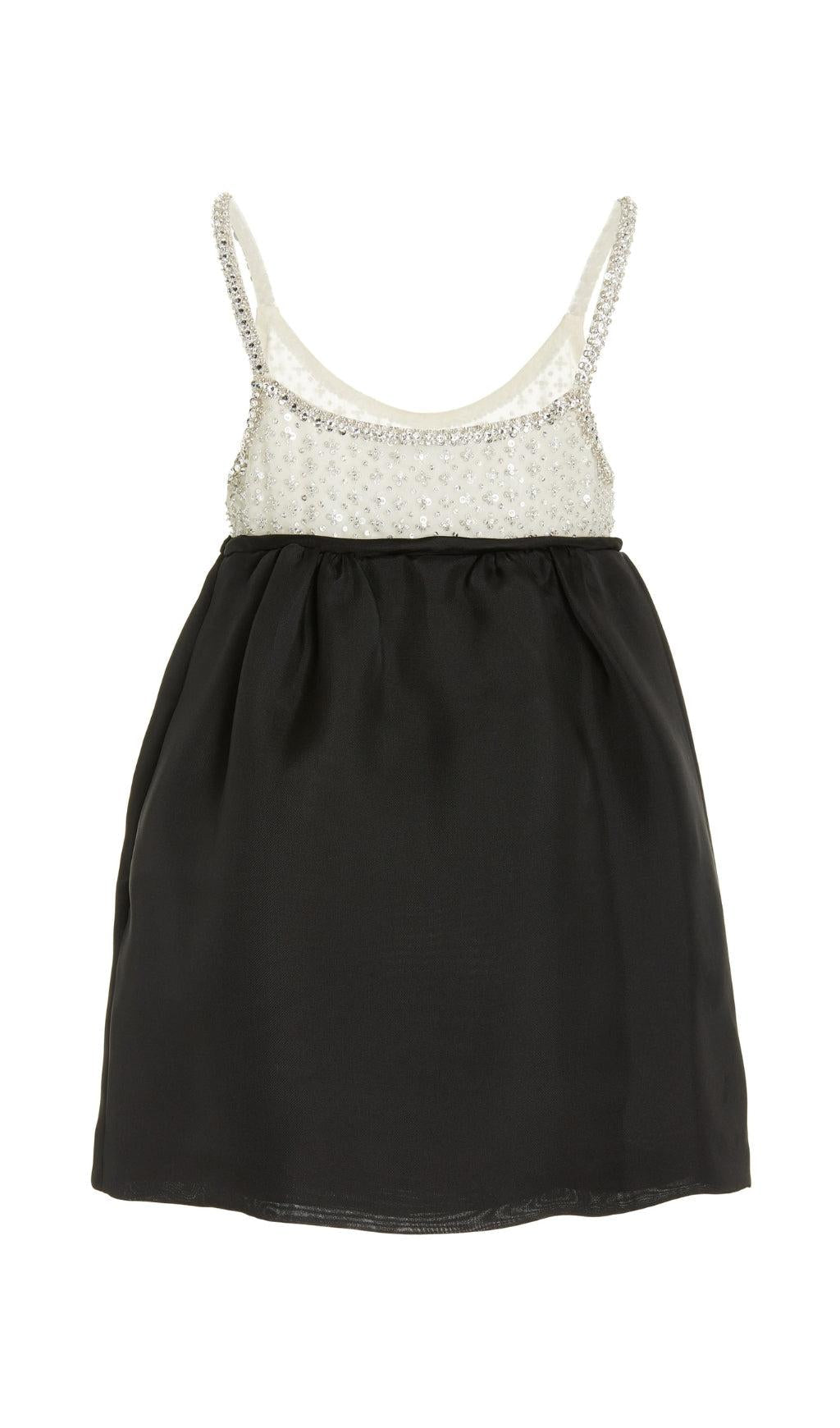 CRYSTAL EMBELLISHED ORGANZA SATIN MINI DRESS IN BLACK