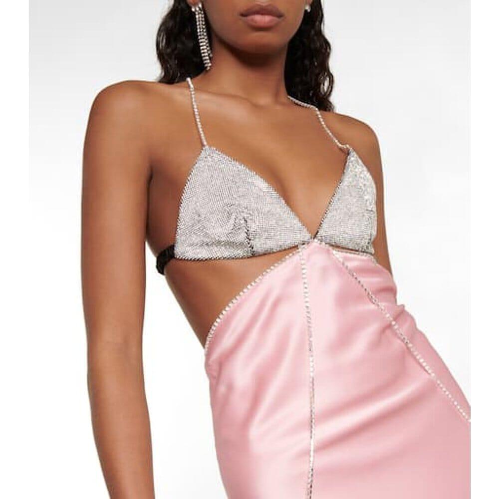 CRYSTAL-EMBELLISHED SLIP MIDI DRESS IN PINK
